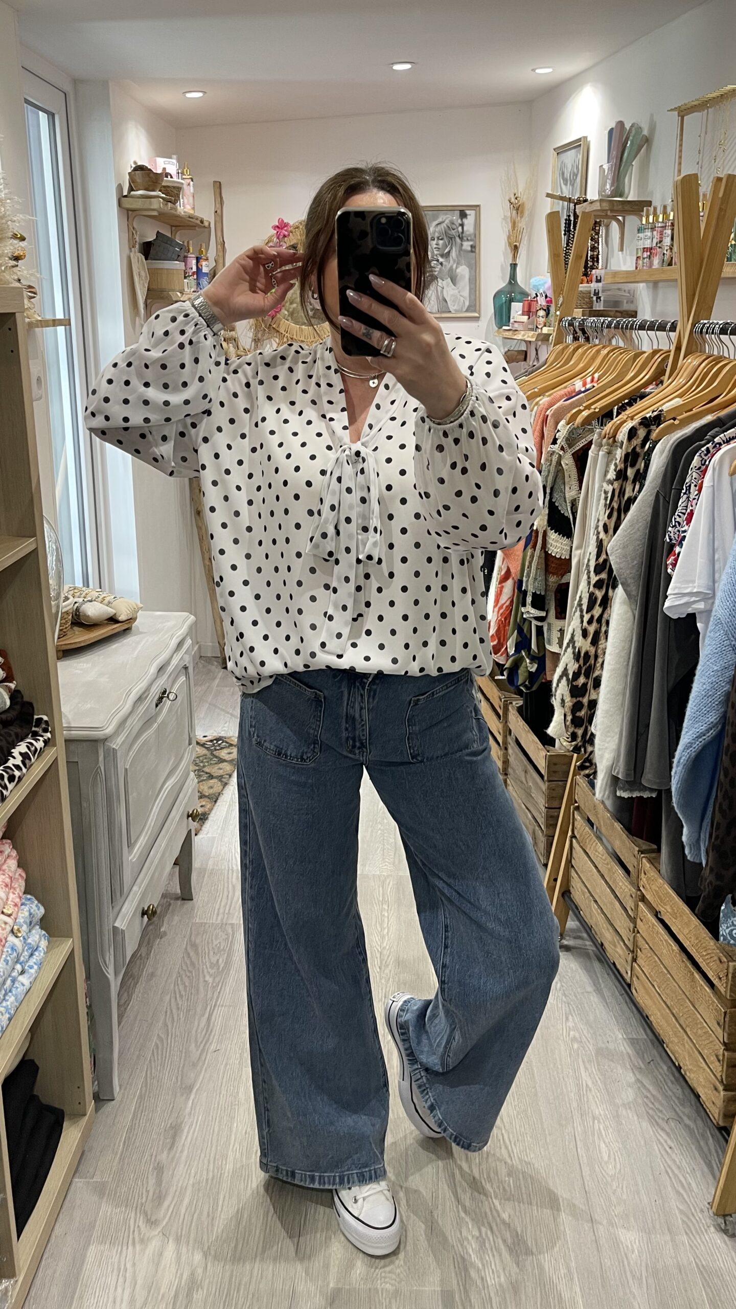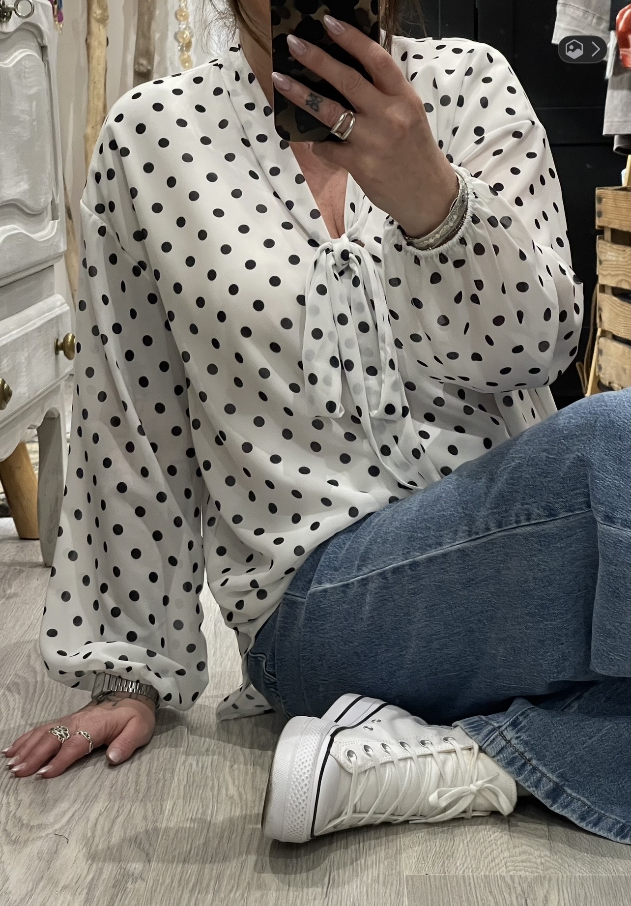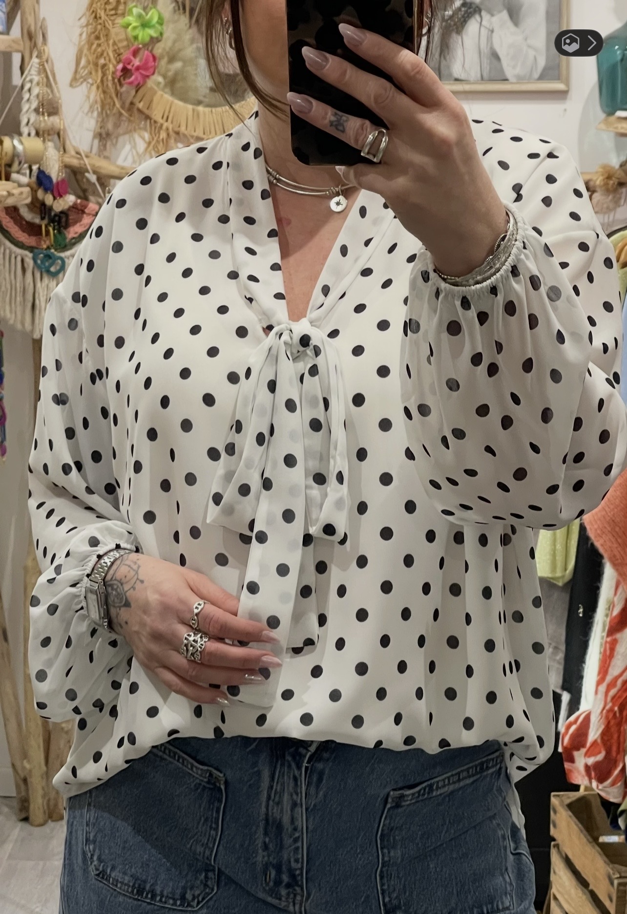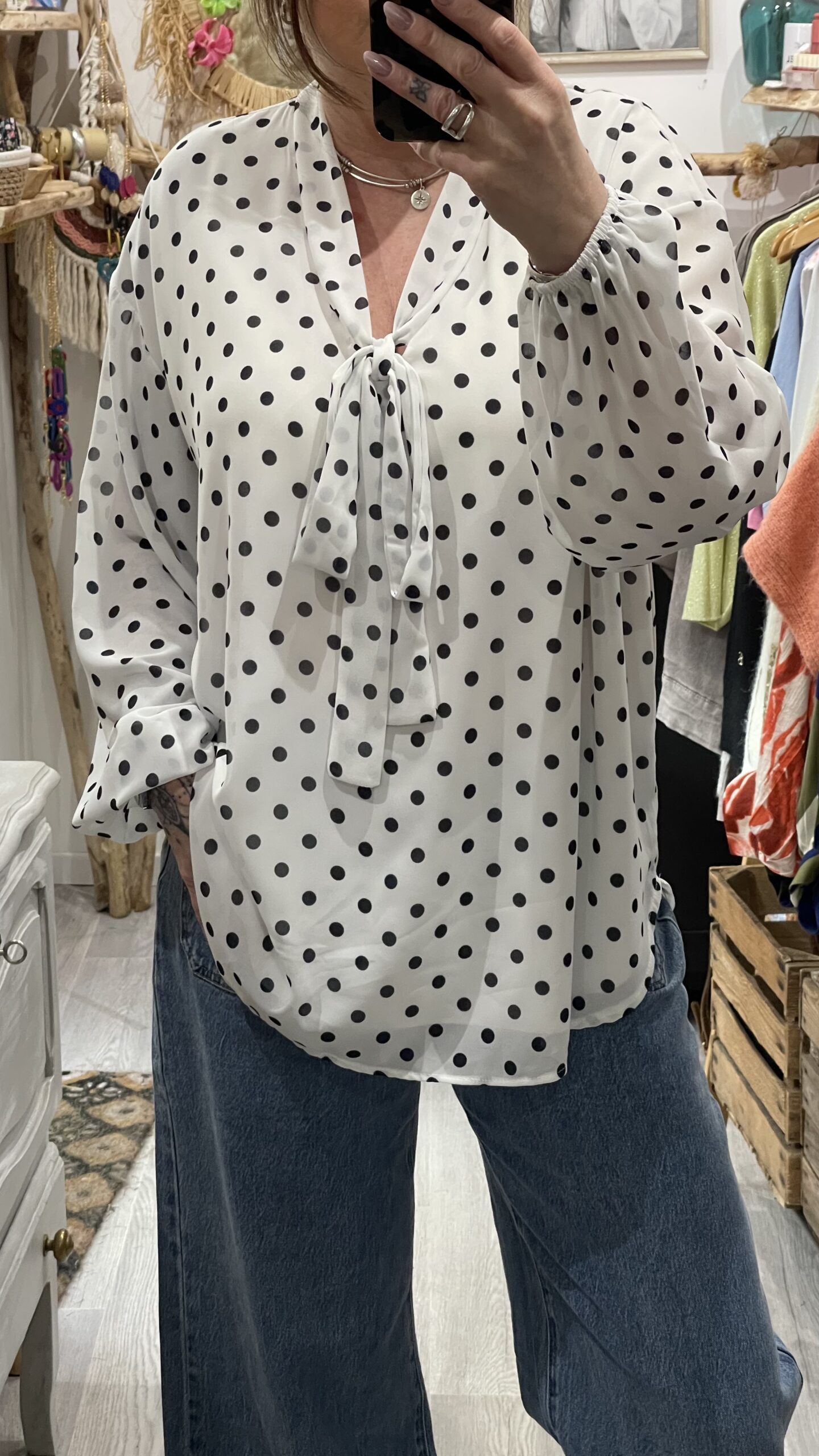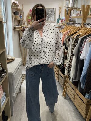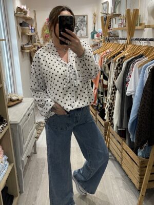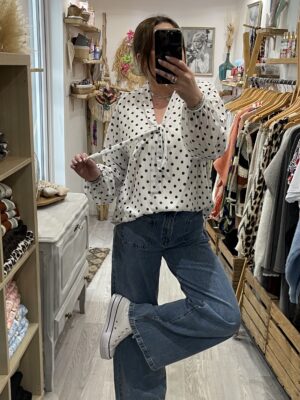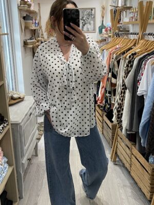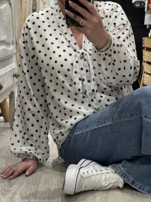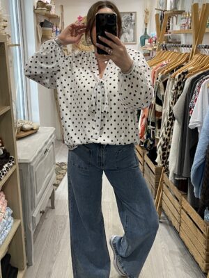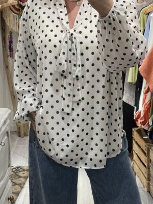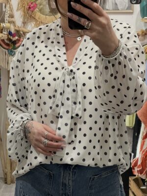 – Blouse oversize blanche et noire à pois