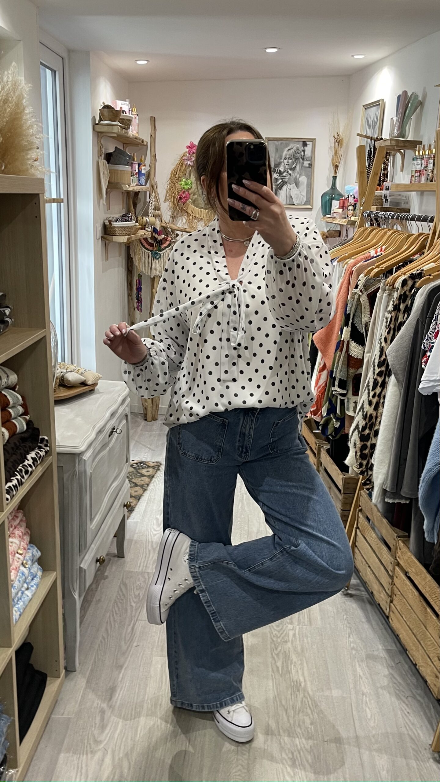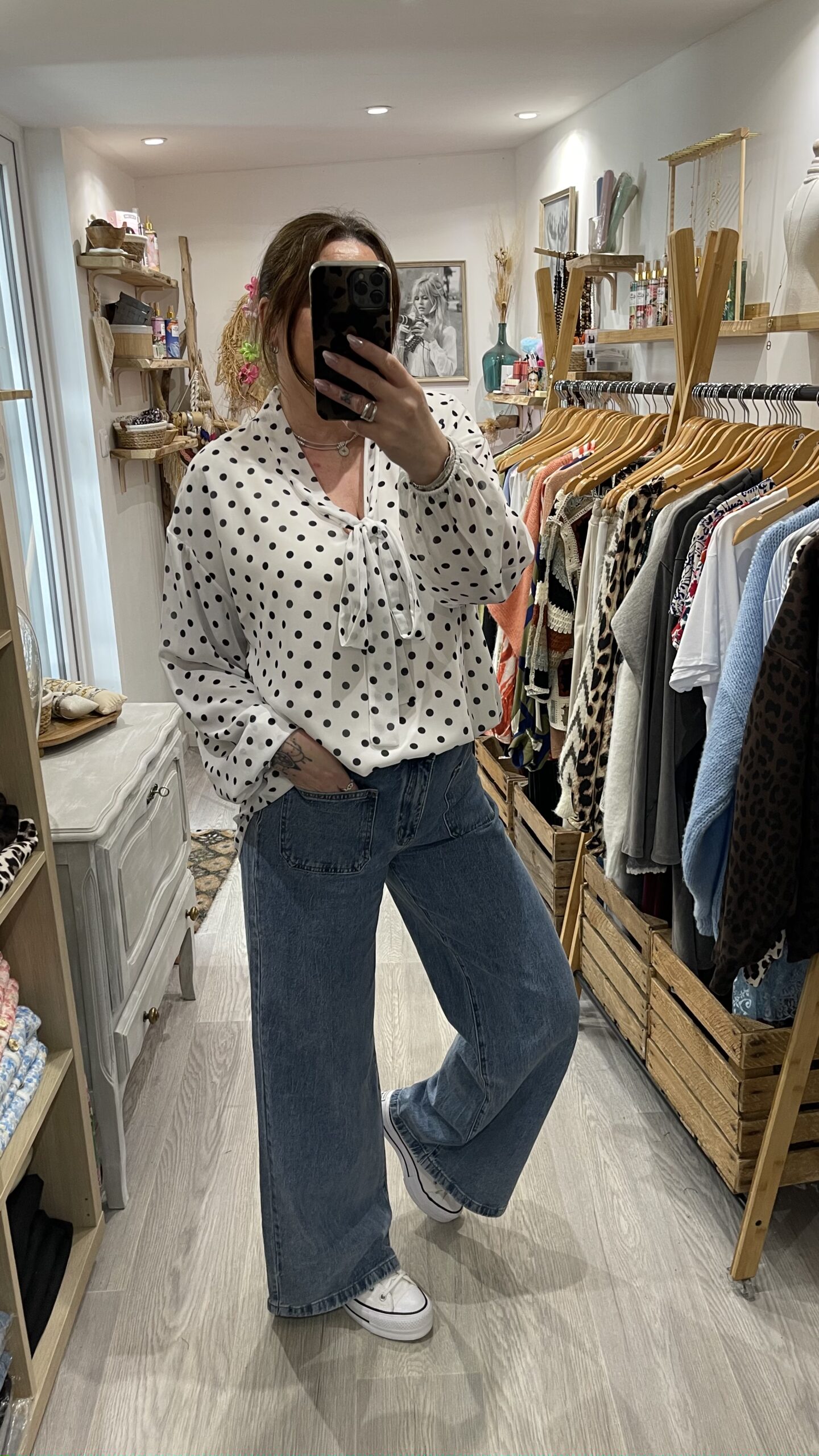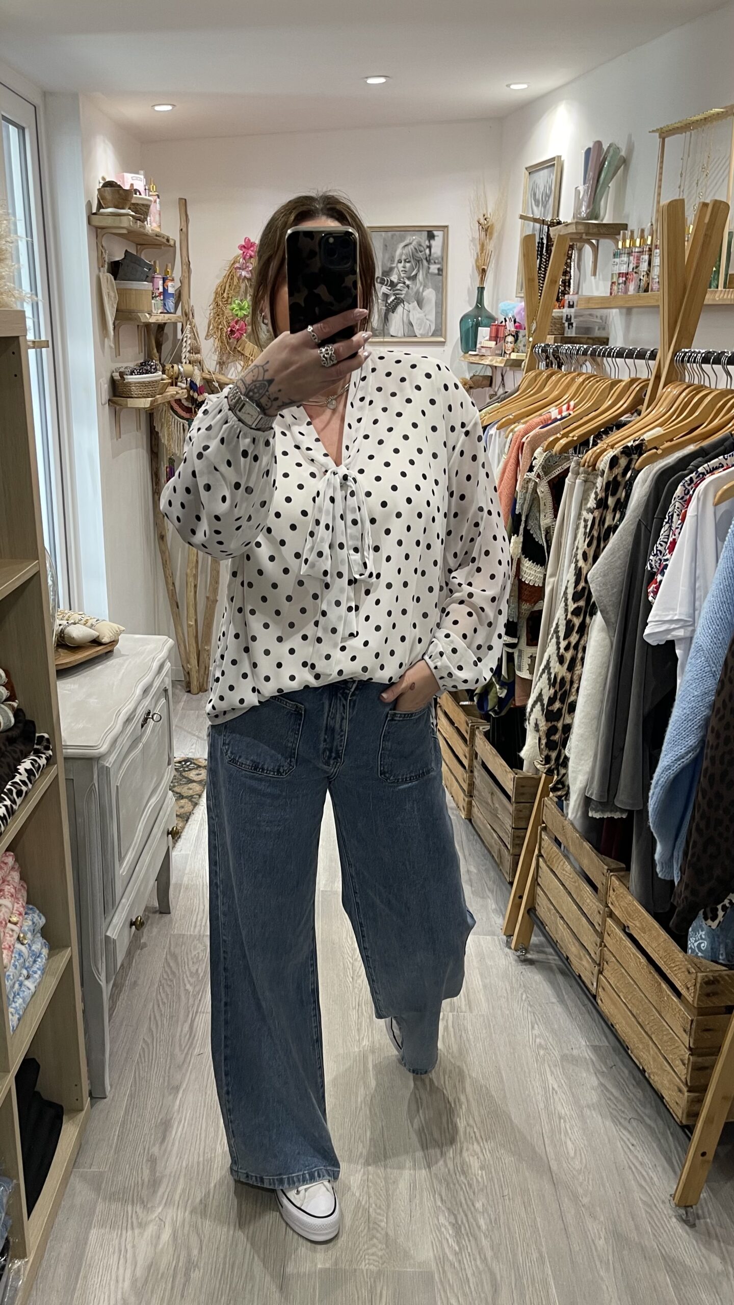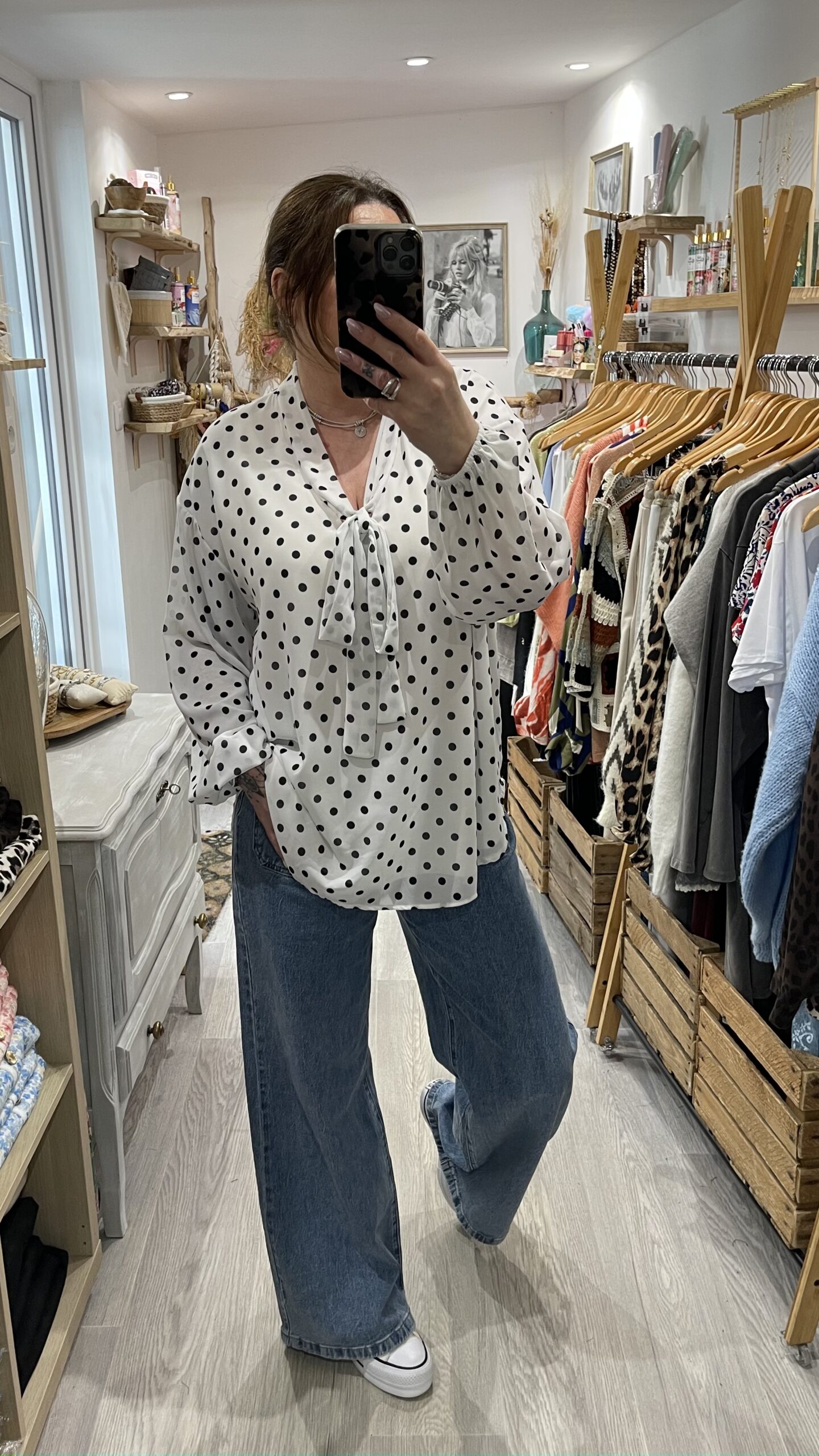 – Blouse oversize blanche et noire à pois