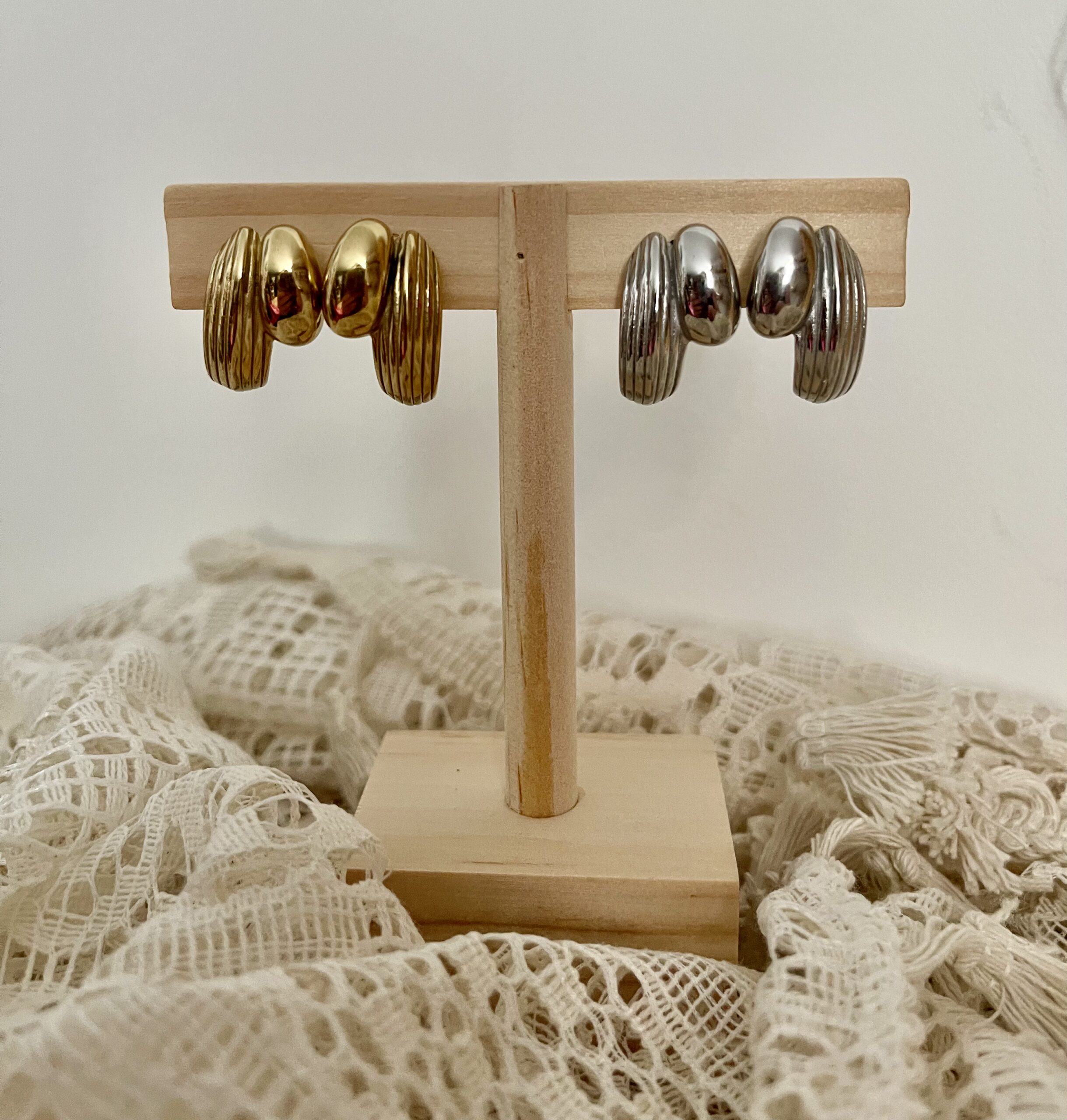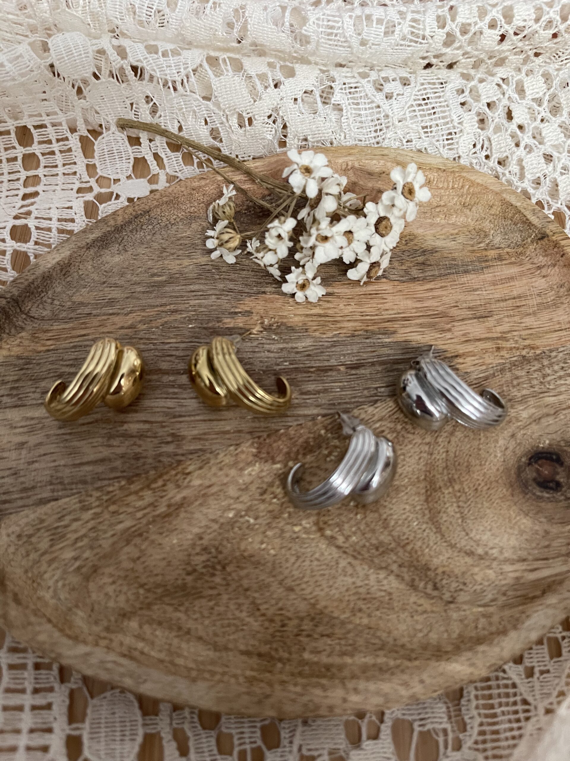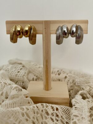 – Boucles d’oreilles dorées en acier inoxydable.