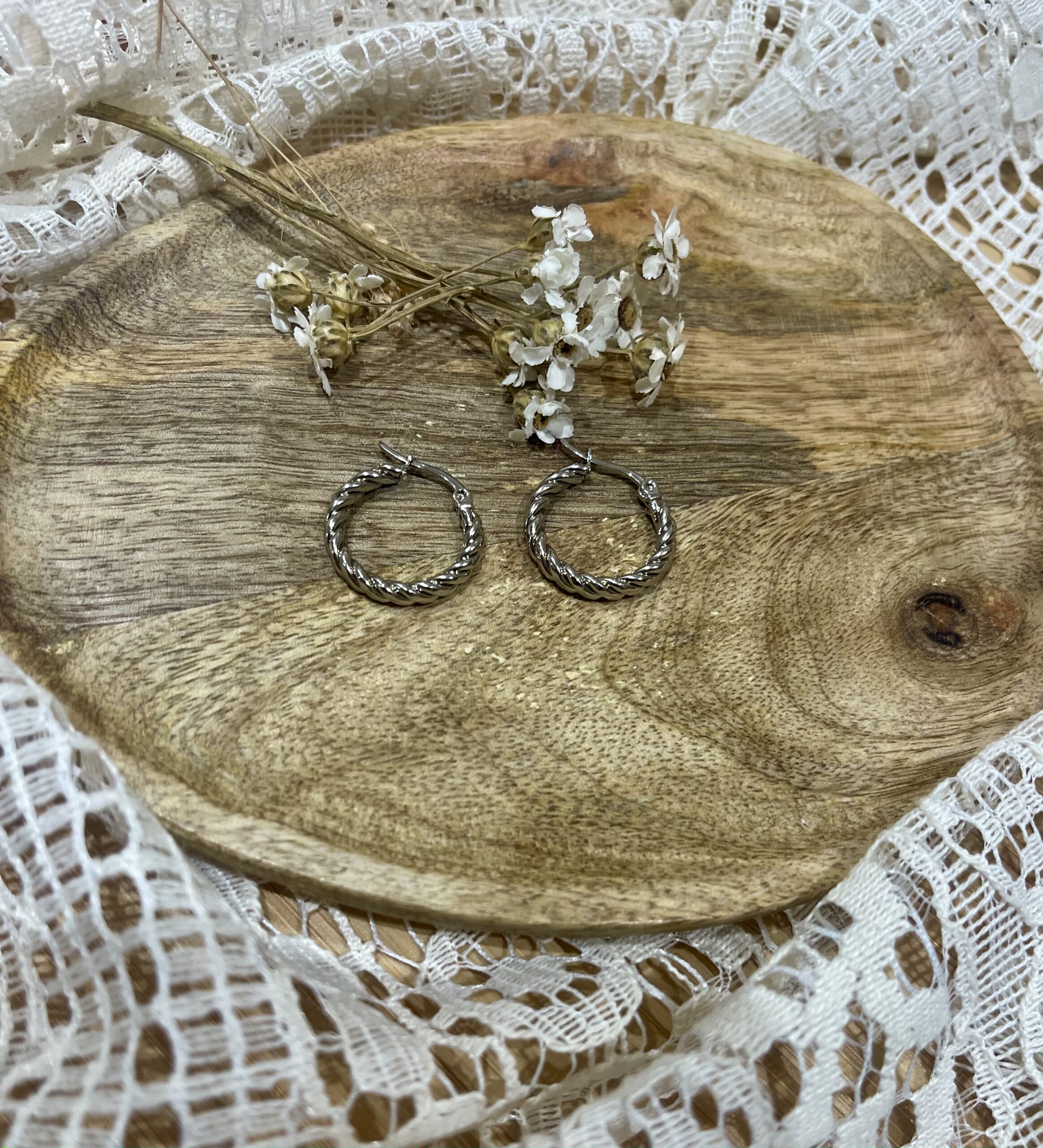 Boucles d’oreilles en créoles rondes argentées, en acier inoxydable.