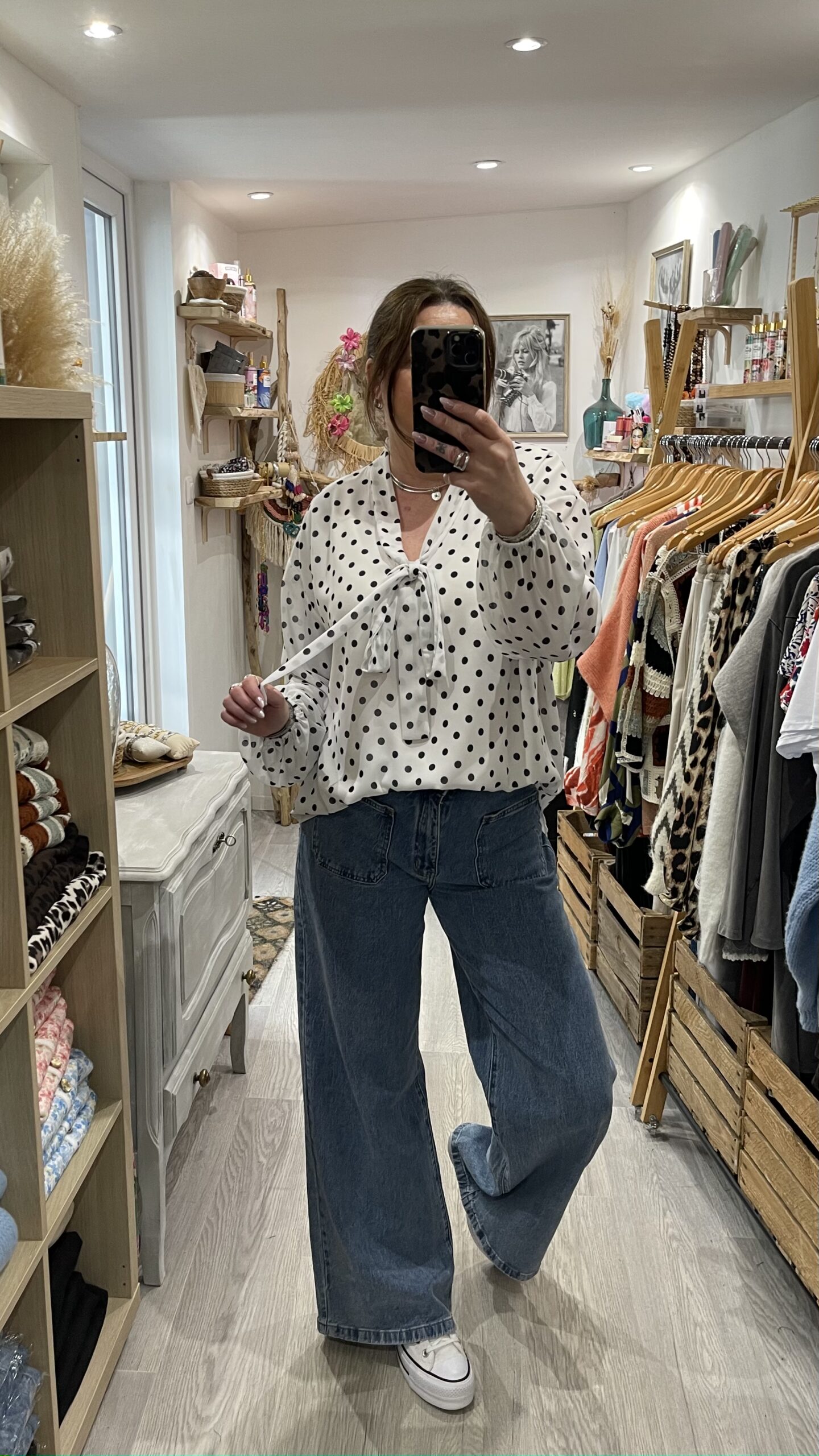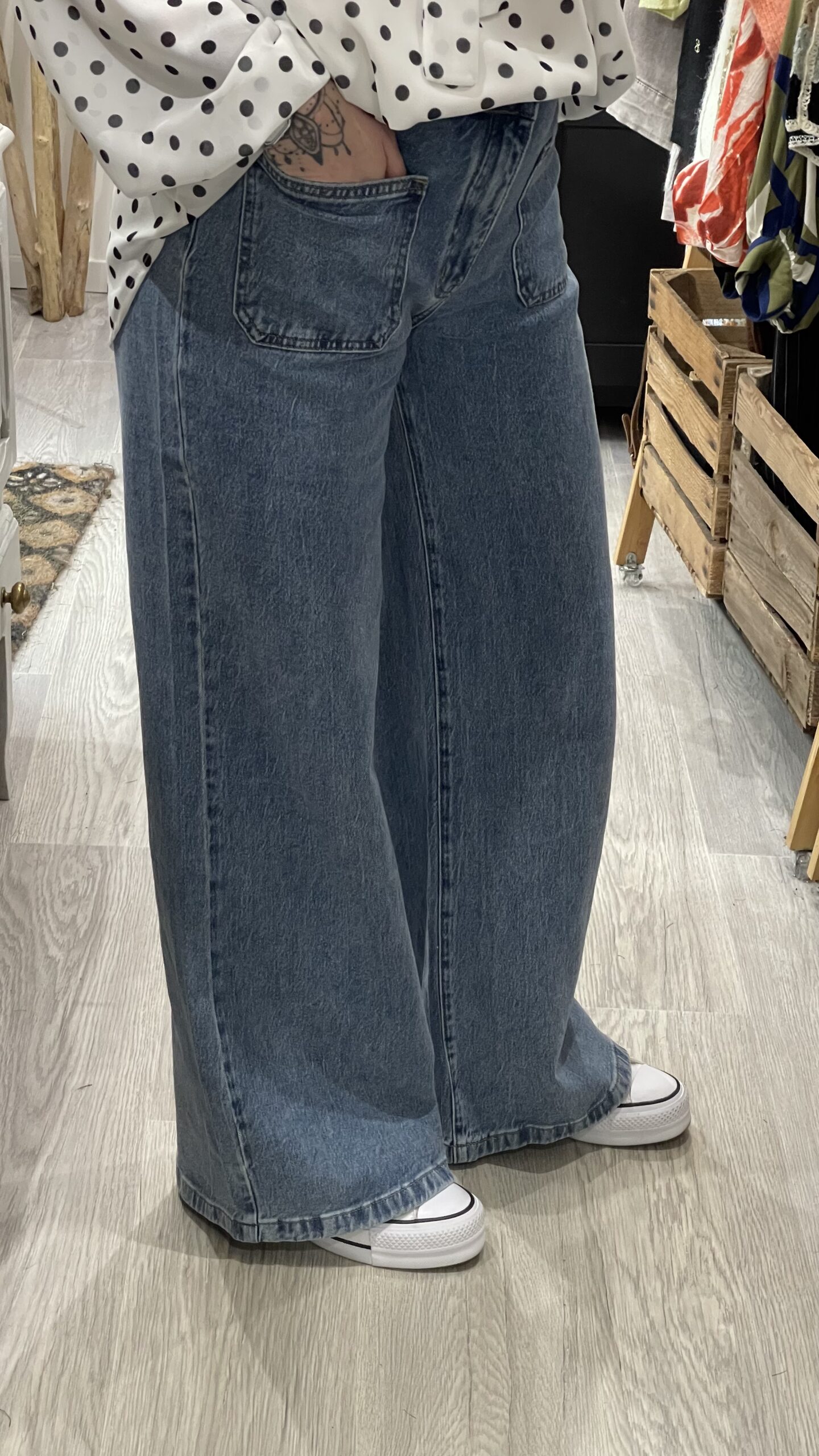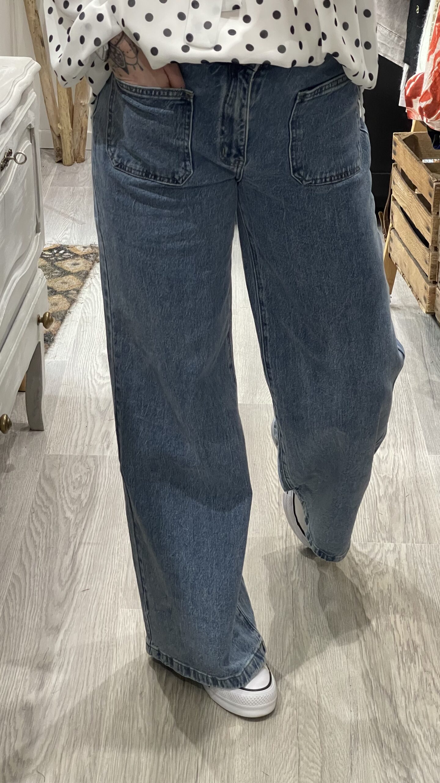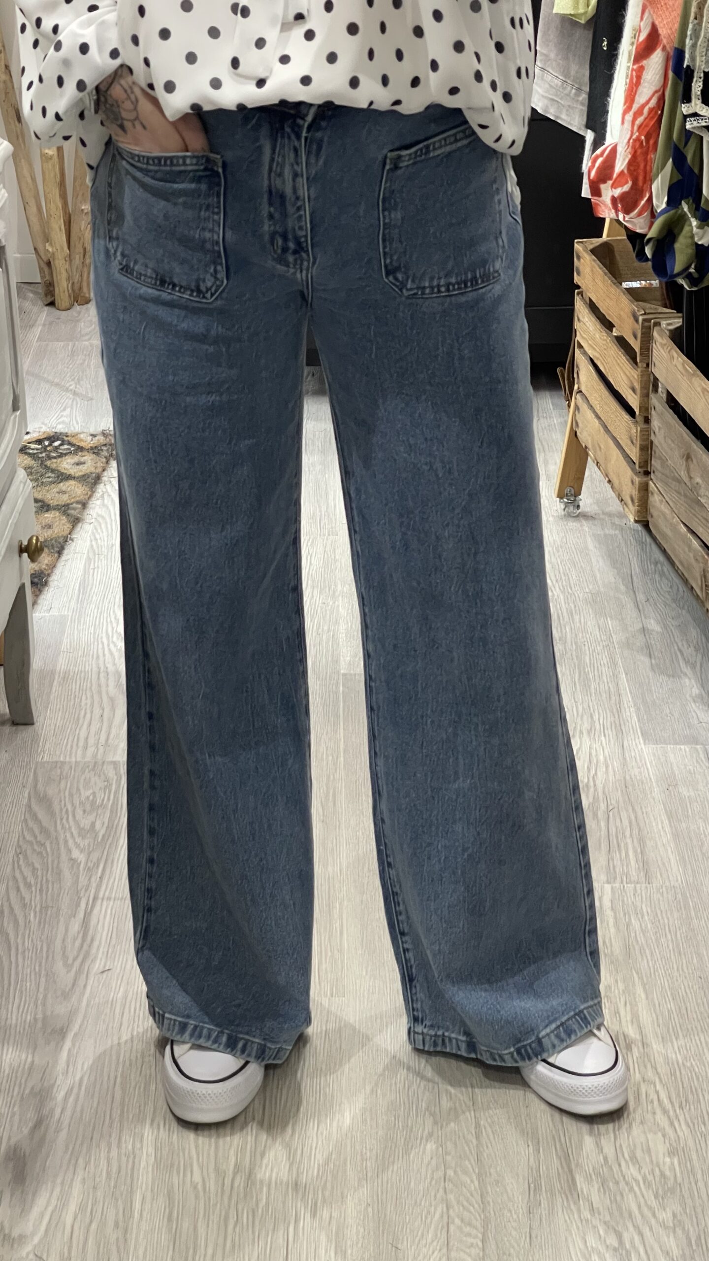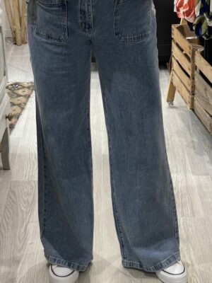 – Jean’s coupe Wide leg, taille haute.