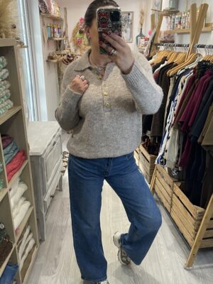 – Jean’s coupe Wide leg, taille haute et prendre sa taille habituelle.