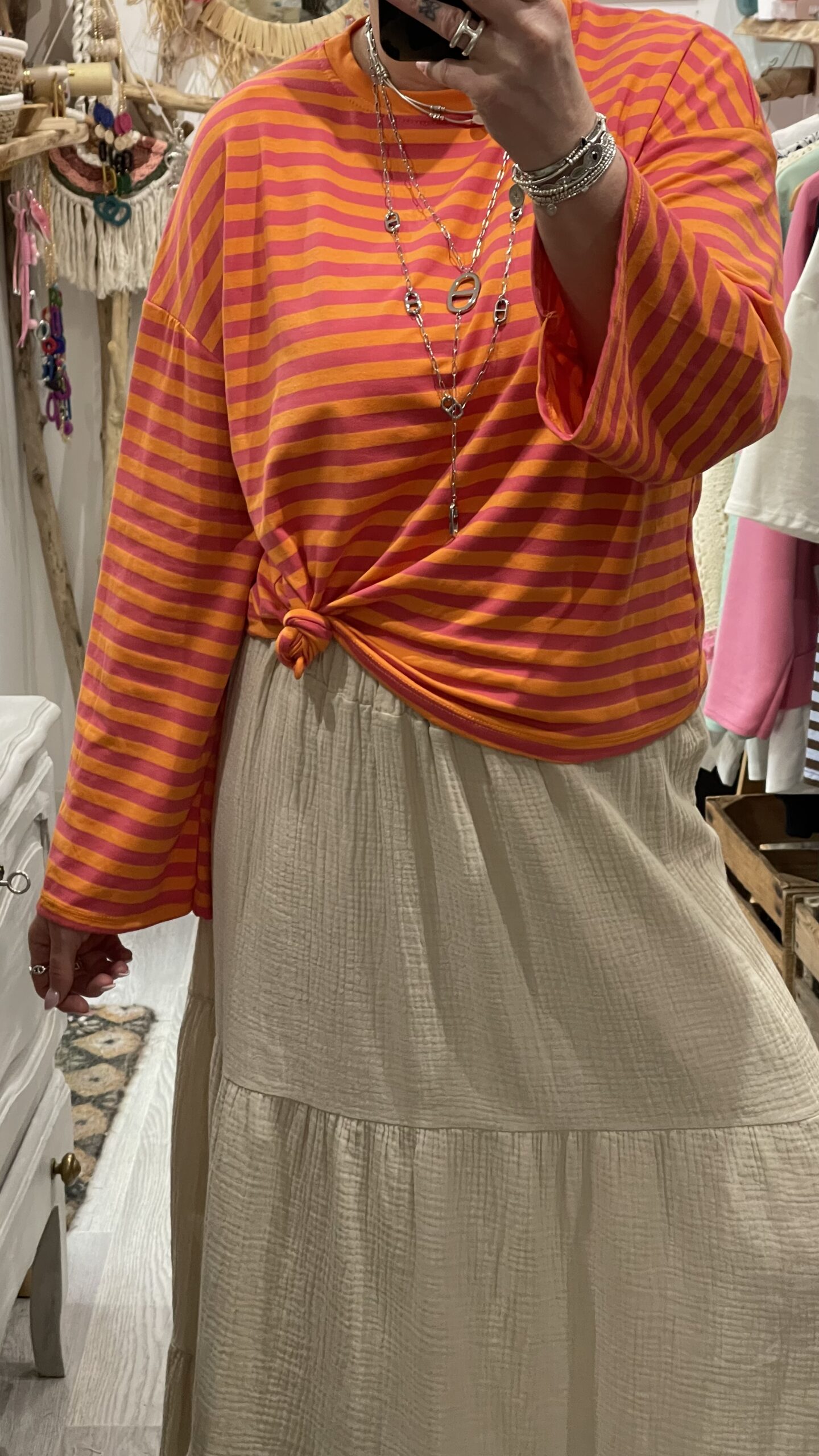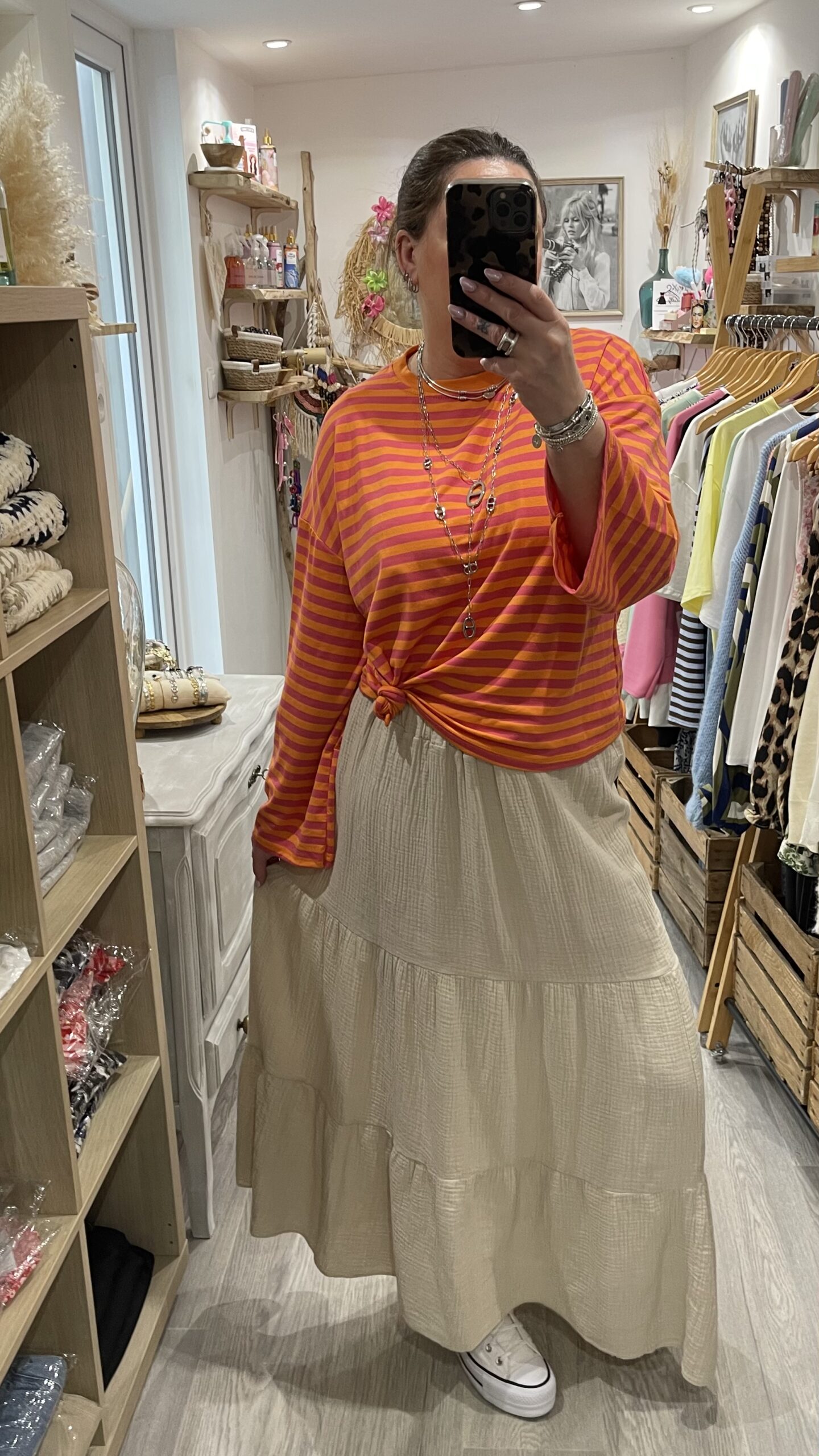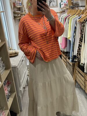 – Jupe en gaz de coton hyper confortable grâce à sa taille élastique..