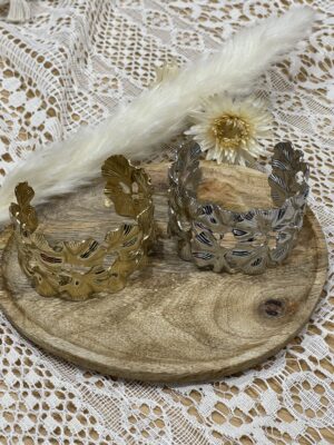 – Bracelet jonc, ajustable en acier inoxydable.
