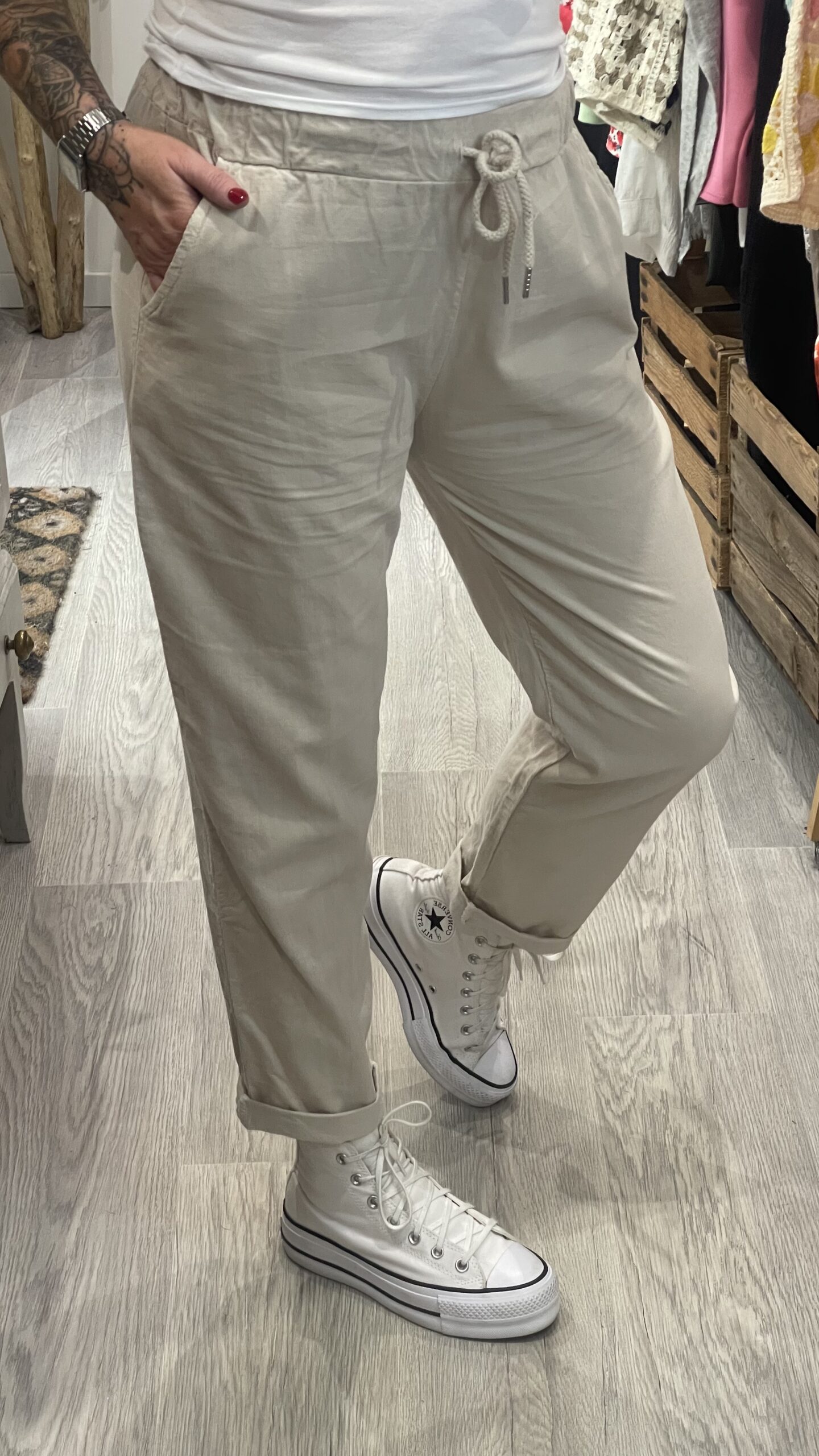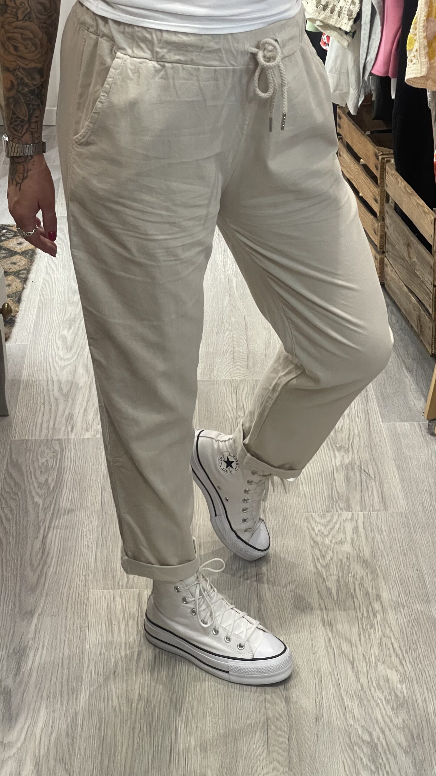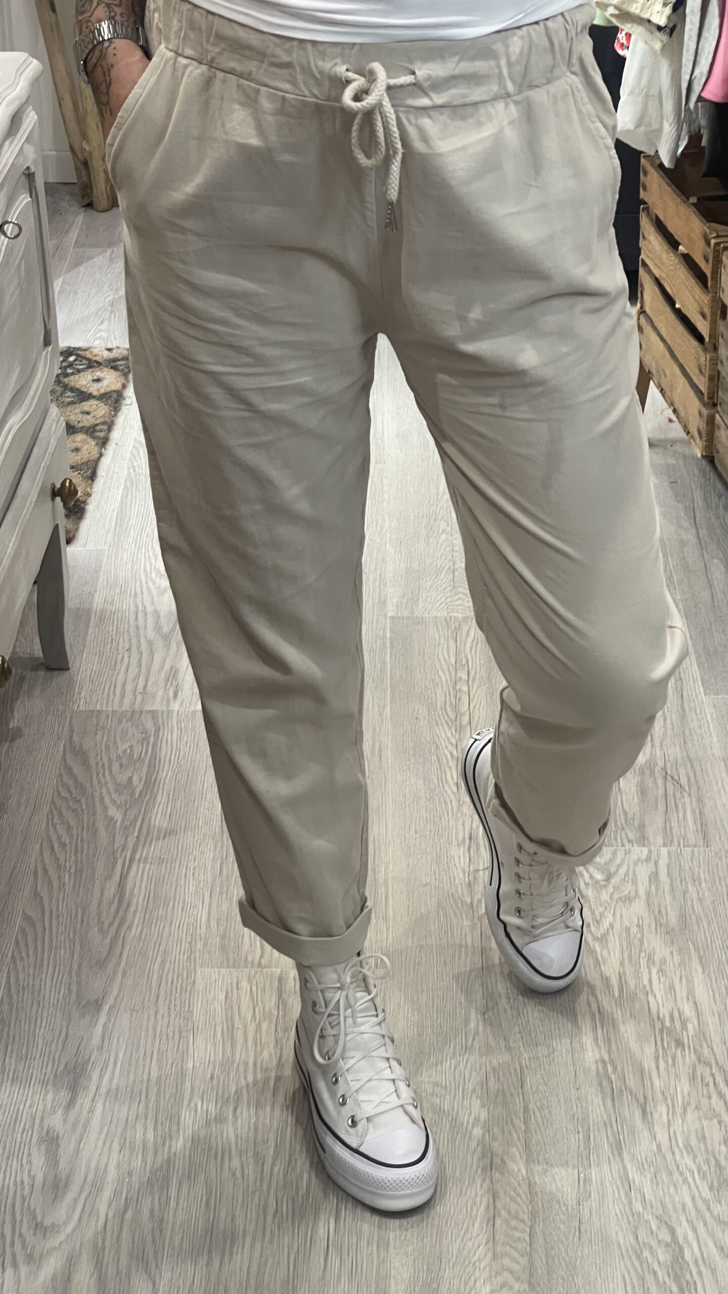 – Pantalon jogging, au style chic ou décontracté, avec taille élastique et cordon de serrage pour un confort optimal.