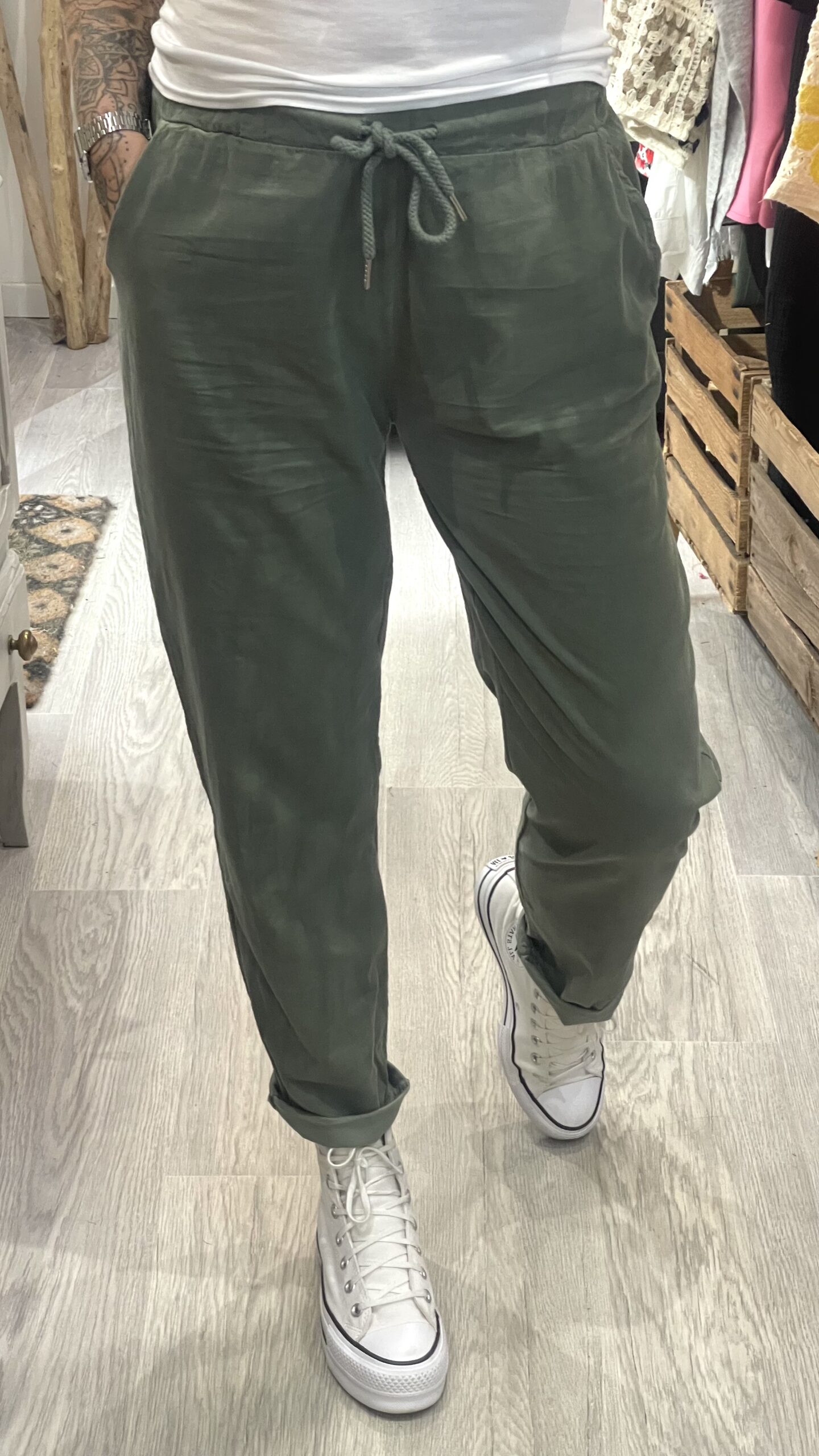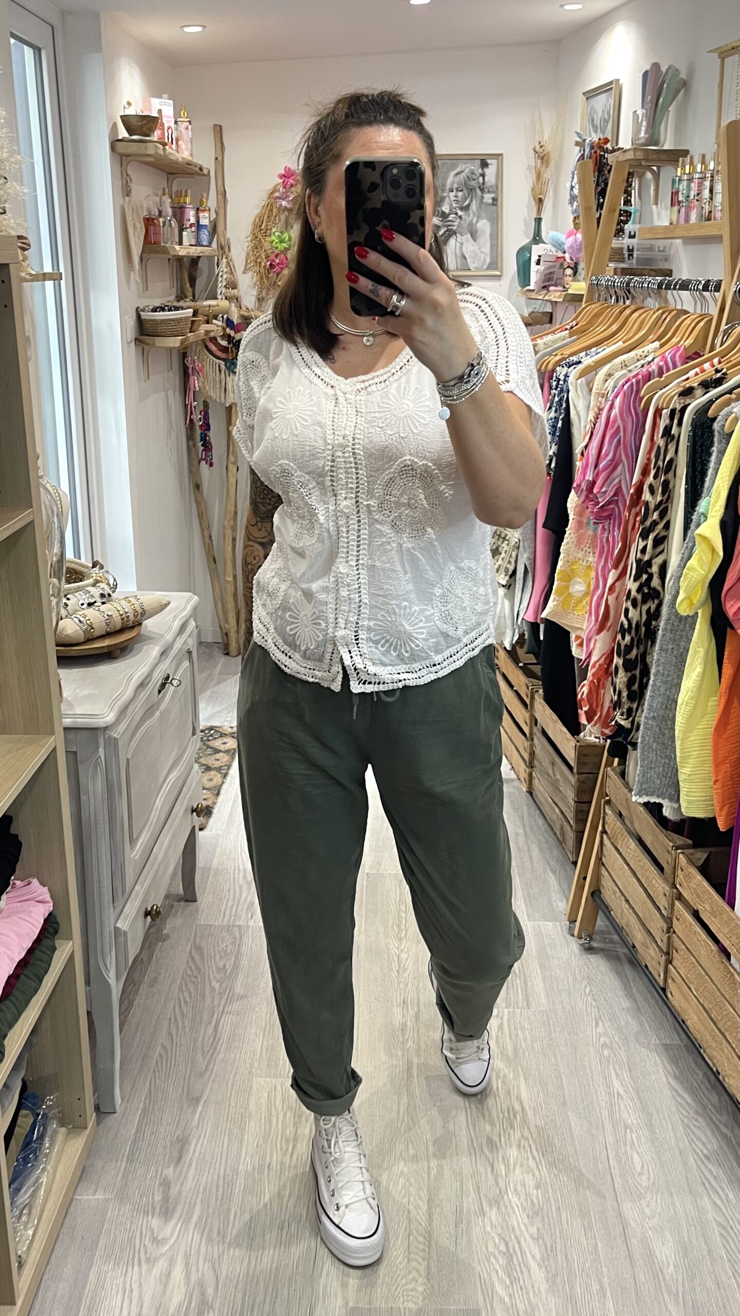 – Pantalon jogging, au style chic ou décontracté, avec taille élastique et cordon de serrage pour un confort optimal.