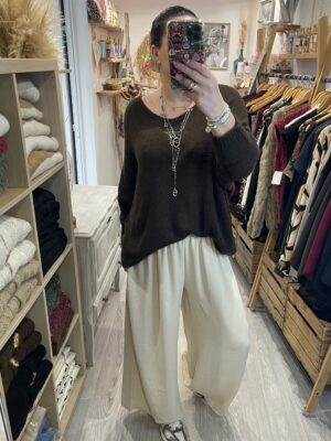 – Pantalon fluide, taille élastique avec une matière ++++ et hyper agréable à porter.