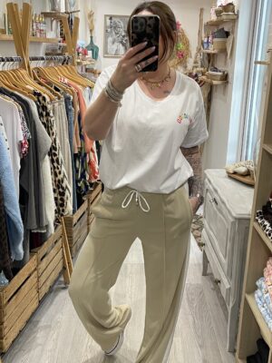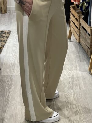 – Pantalon jogging beige avec 1 bande blanche sur le coté, hyper confort à porter. Sa taille élastique avec un cordon de serrage permet un ajustement parfait.