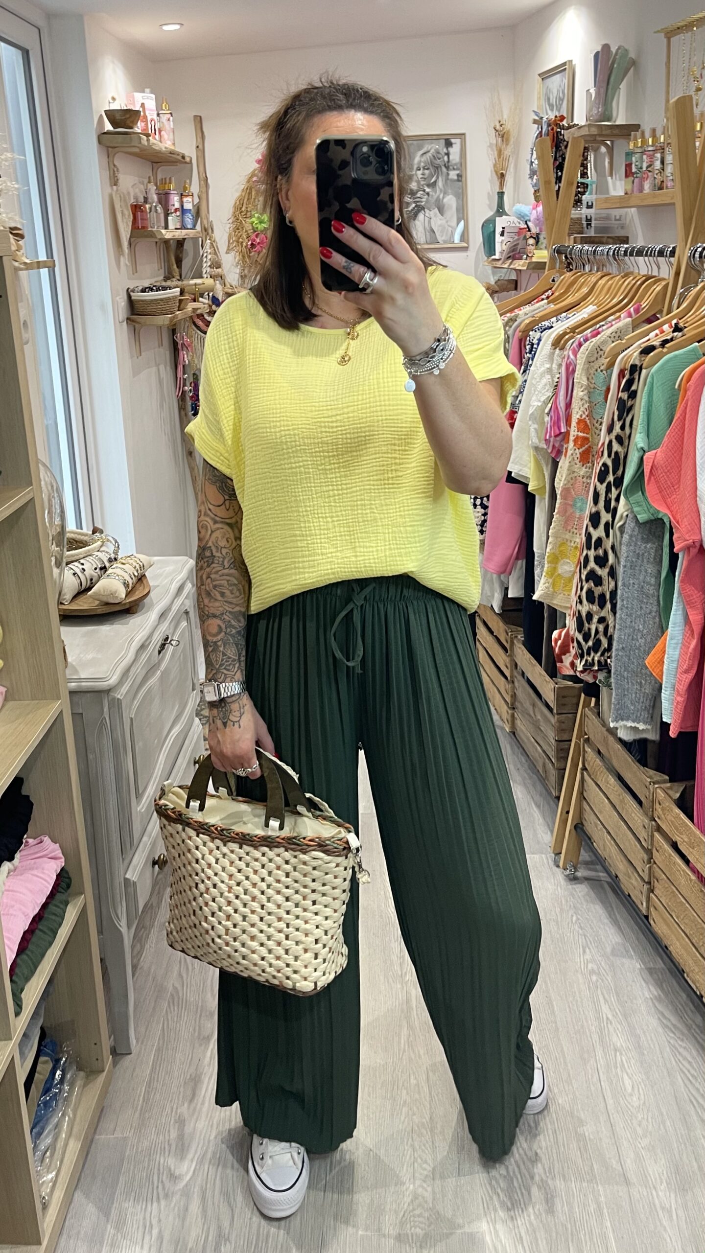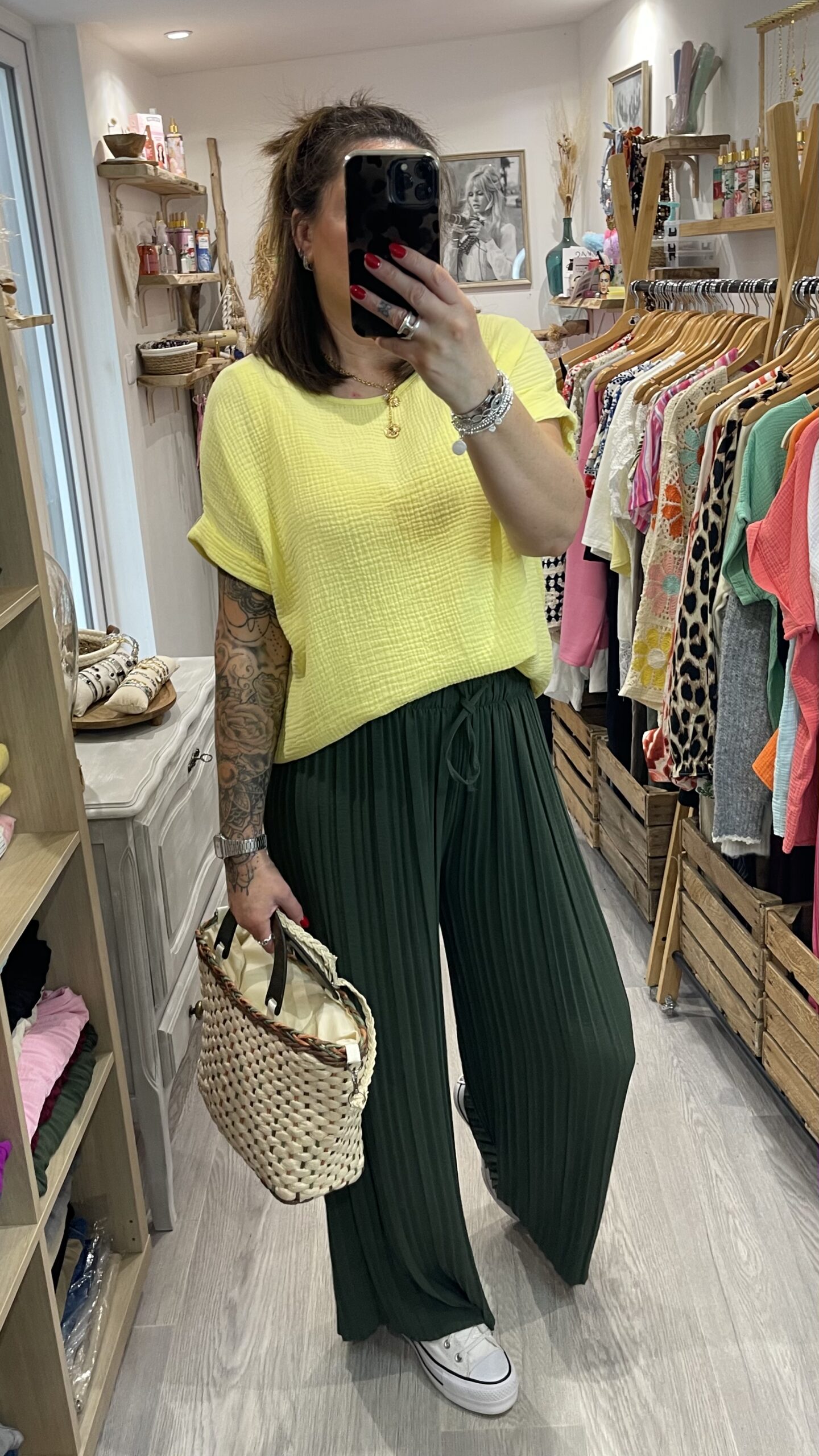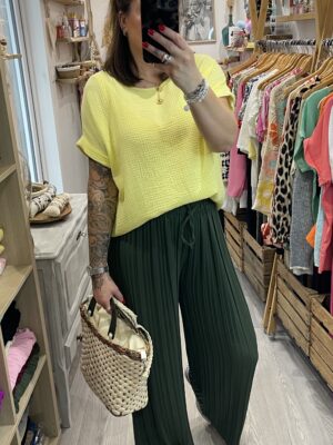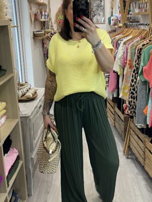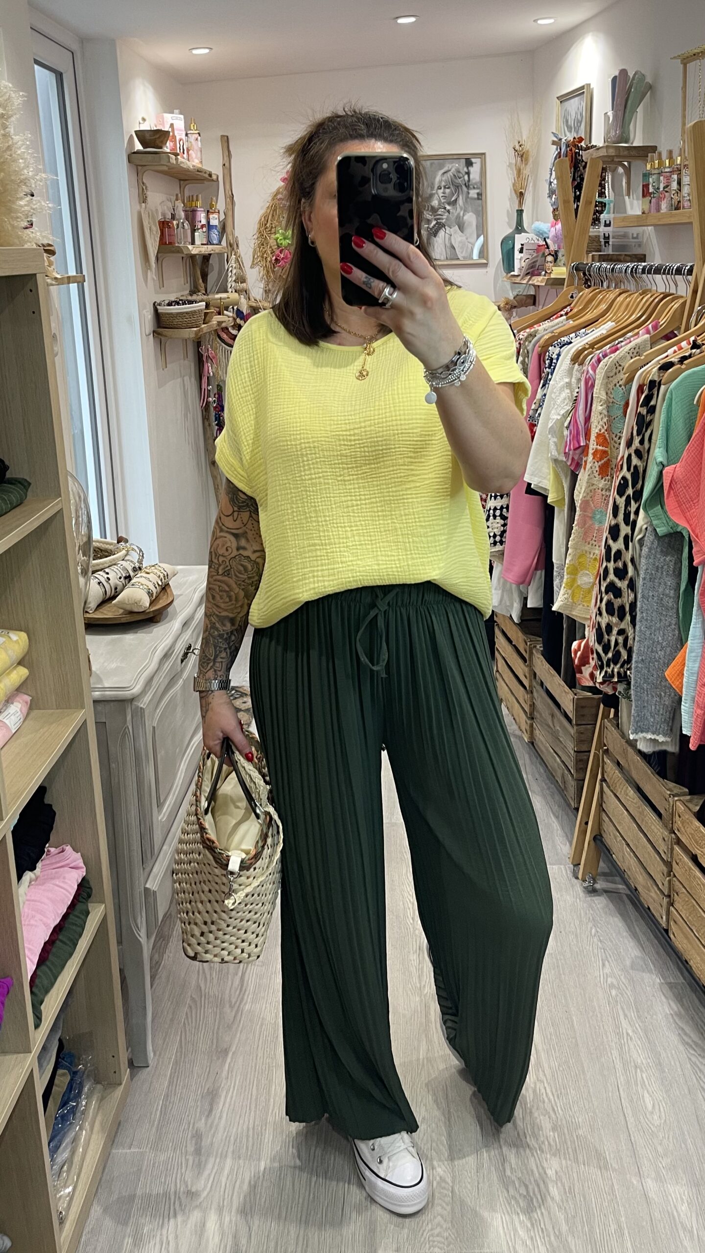 – Pantalon plissé est notre Best seller, est un incontournable à intégrer dans votre dressing. Il élance la silhouette, apporte instantanément une note chic et reste particulièrement confortable à porter. Grâce à sa taille unique du 36 au 52, il s’adapte facilement à toutes les morphologies.