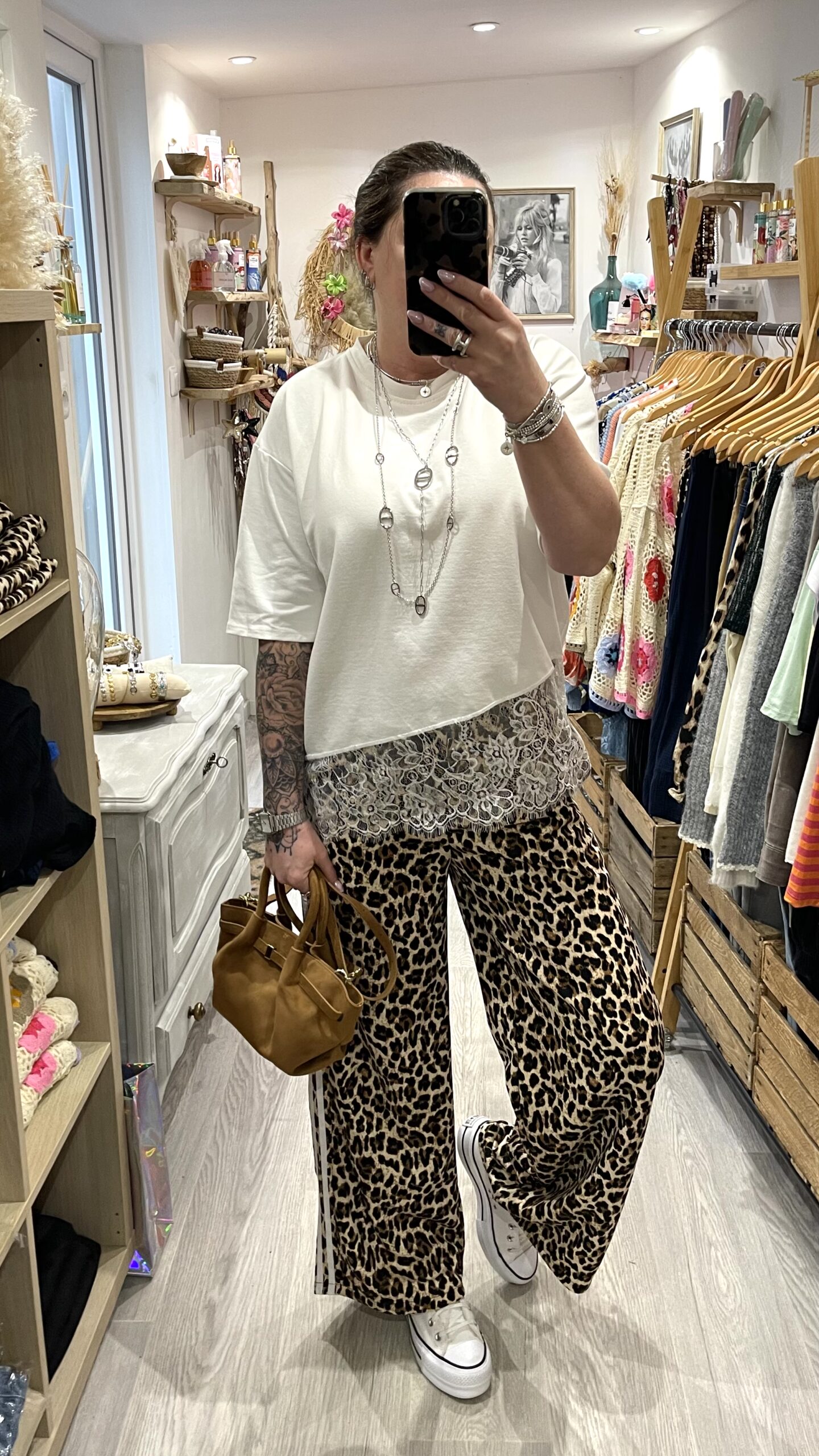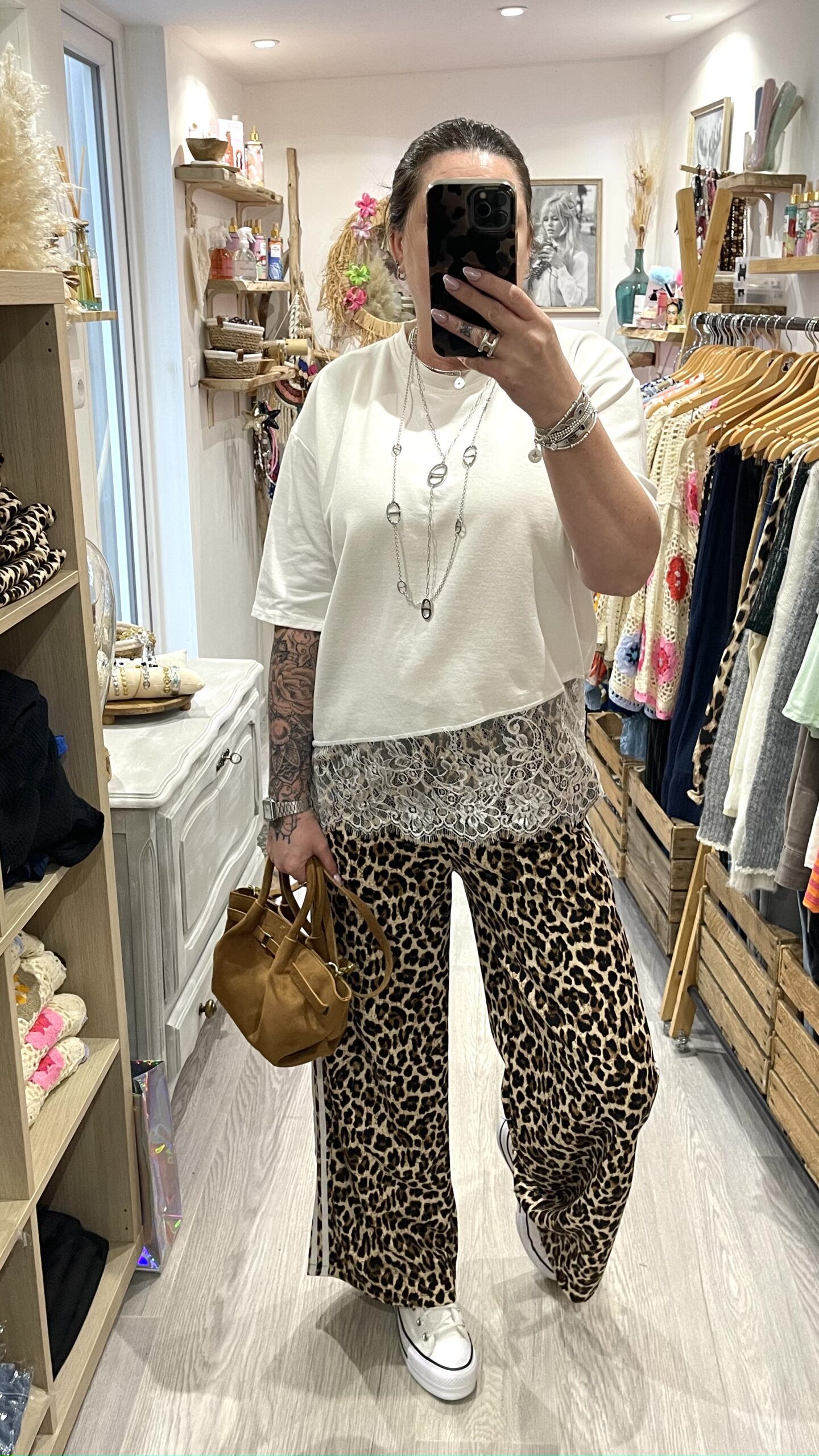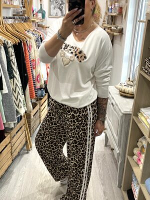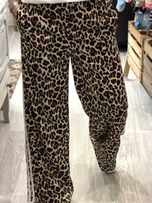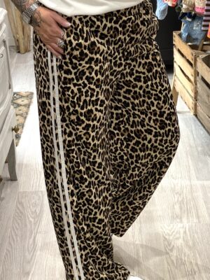 – Pantalon jogging imprimé léopard avec 2 bandes blanches sur le coté, hyper tendance et confort à porter grâce à sa taille élastique.