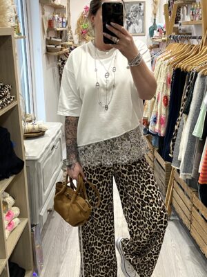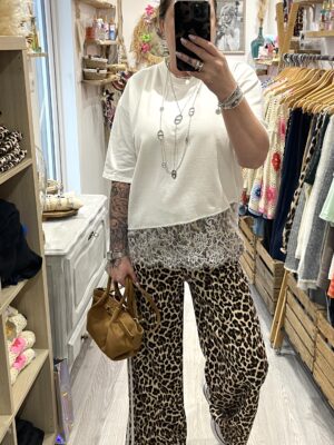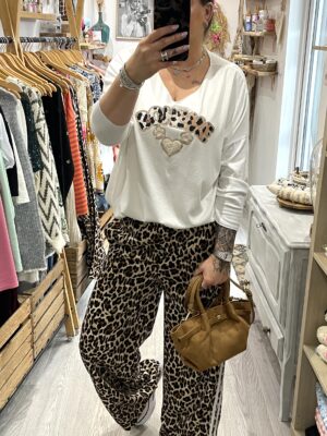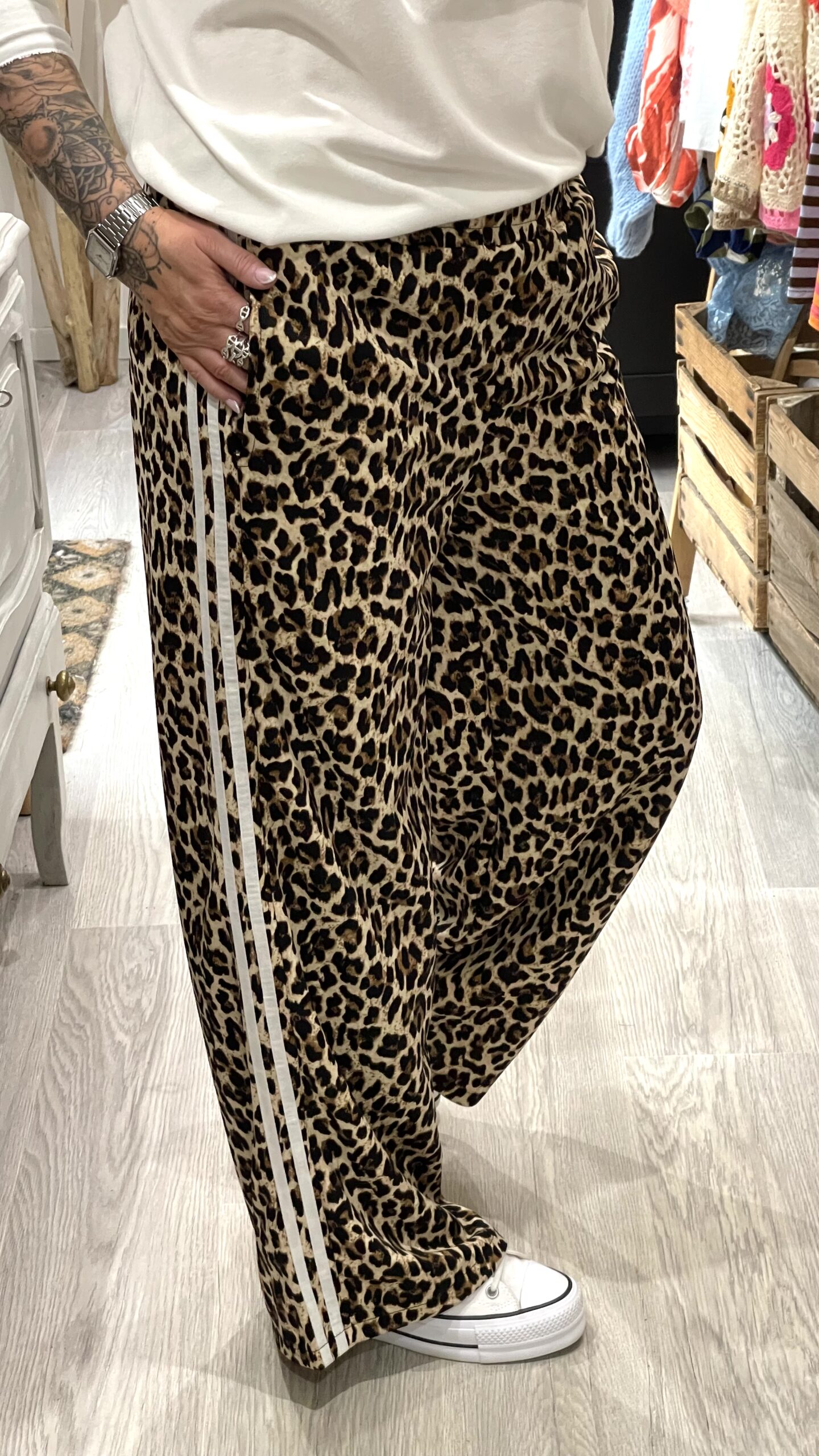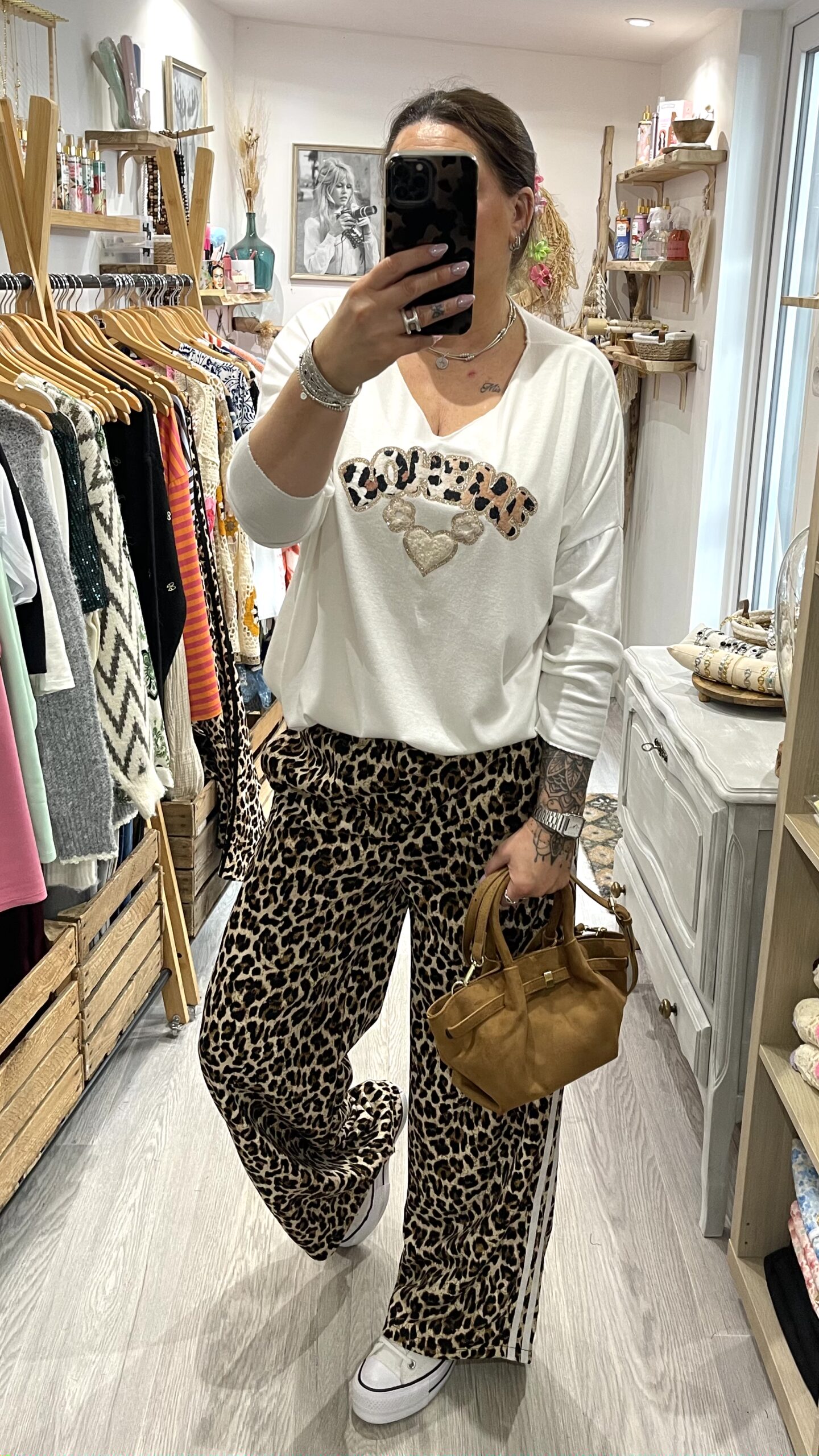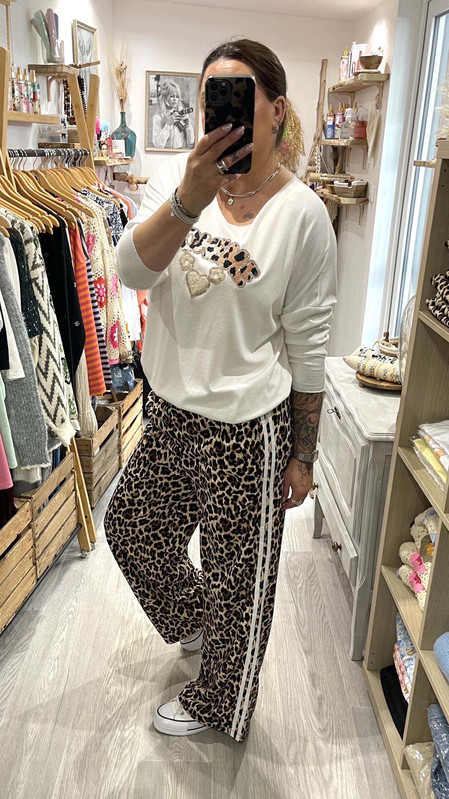 – Pantalon jogging imprimé léopard avec 2 bandes blanches sur le coté, hyper tendance et confort à porter grâce à sa taille élastique.