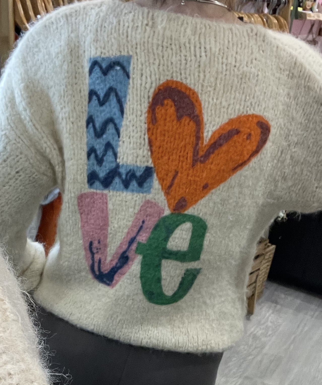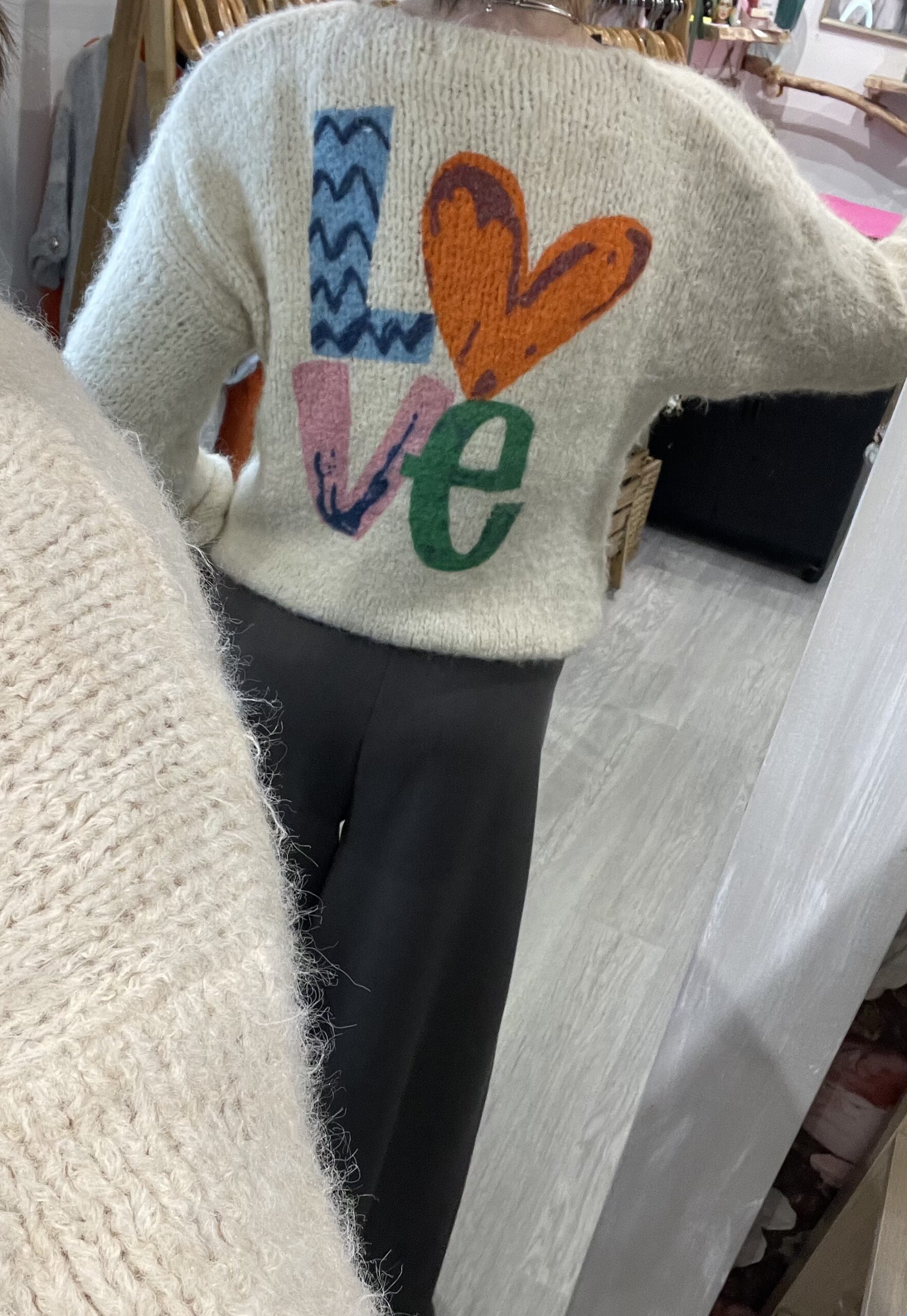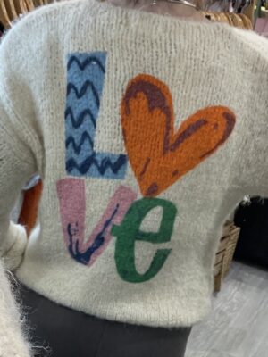 – Pull ultra cocooning avec son joli imprimé coloré LOVE dans le dos.