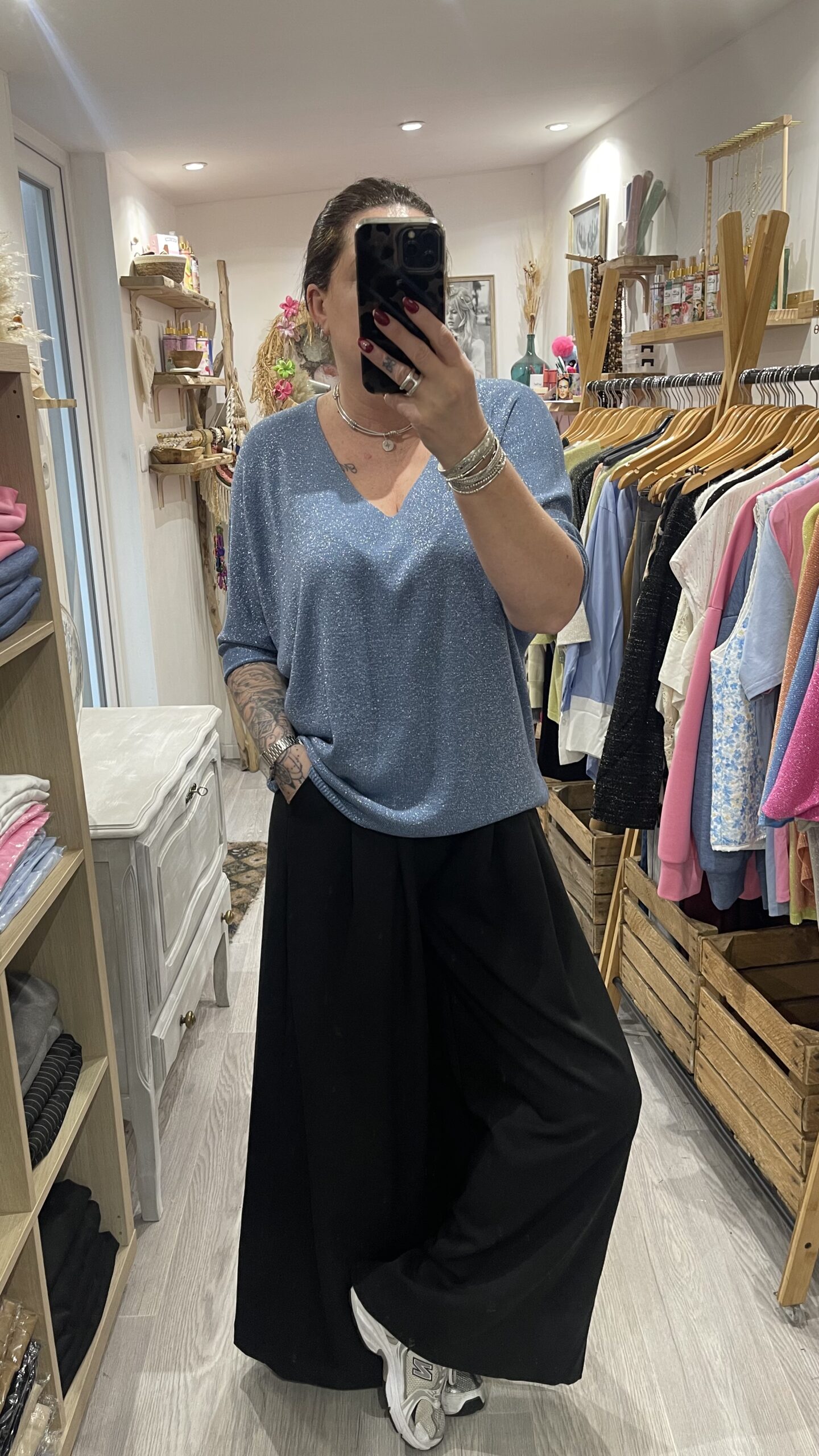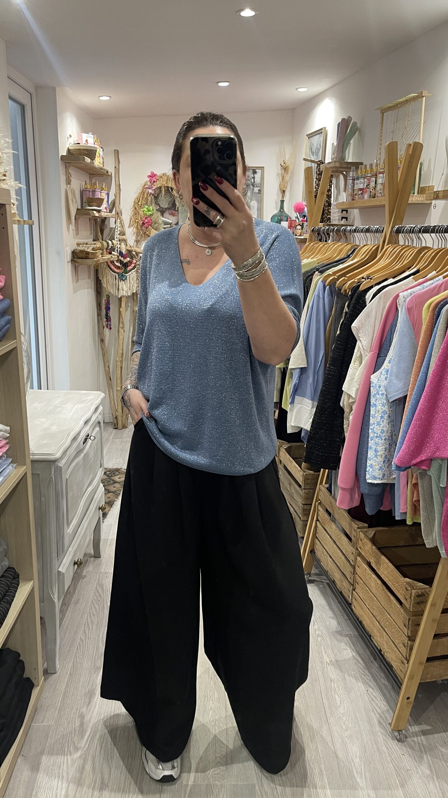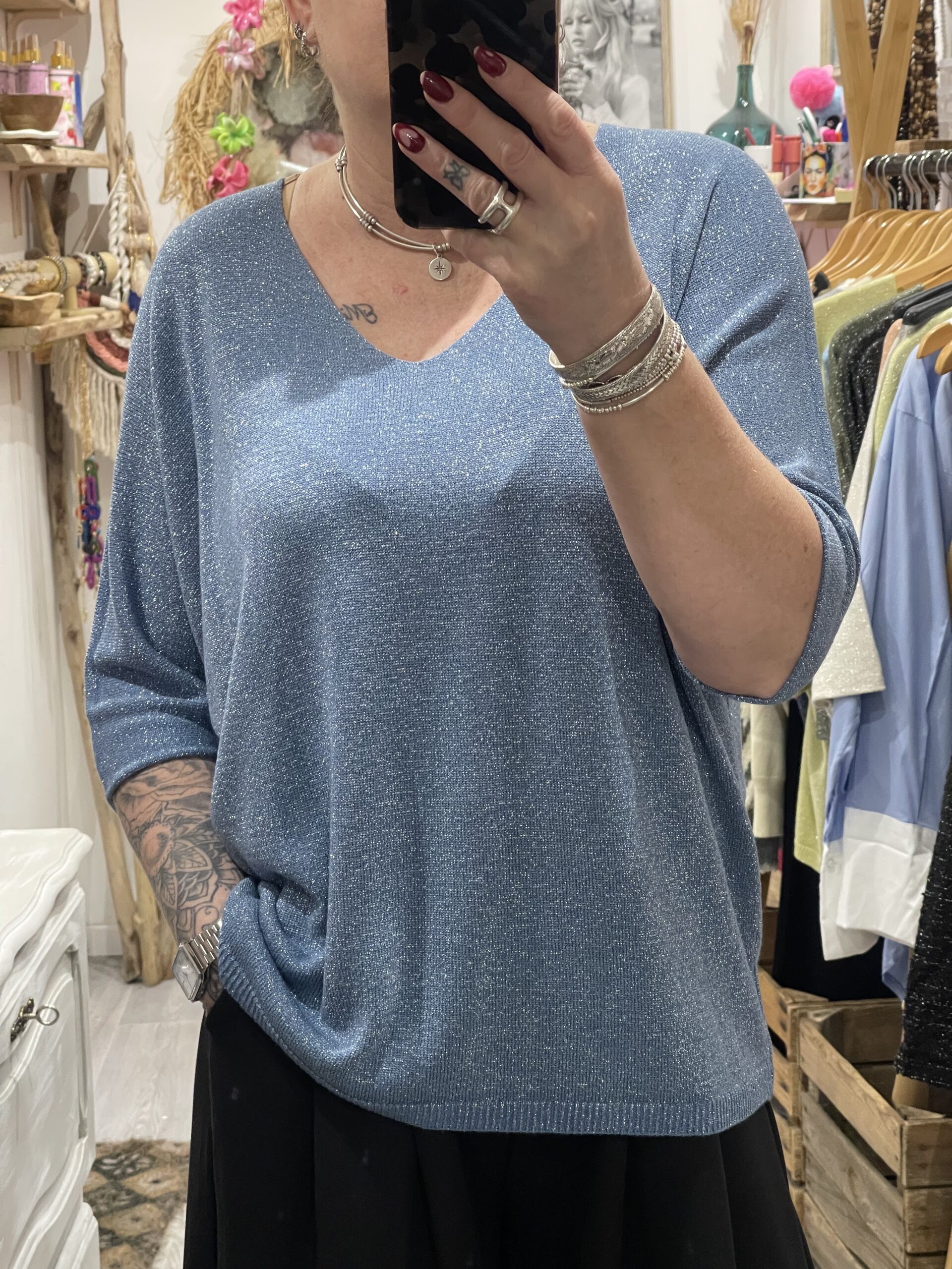 – Pull maille brillante.