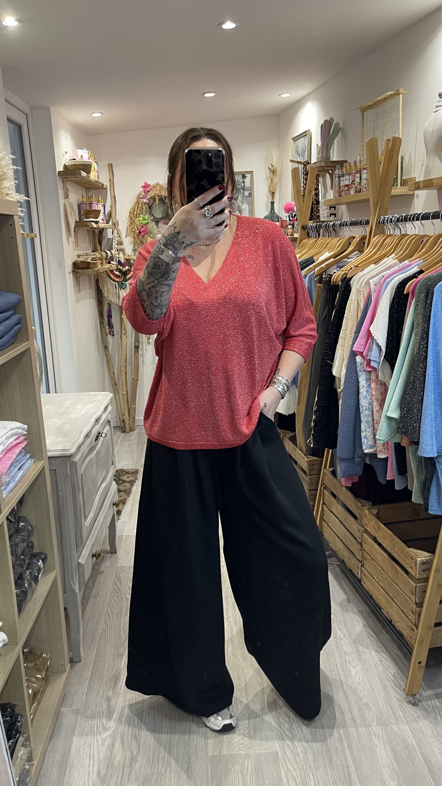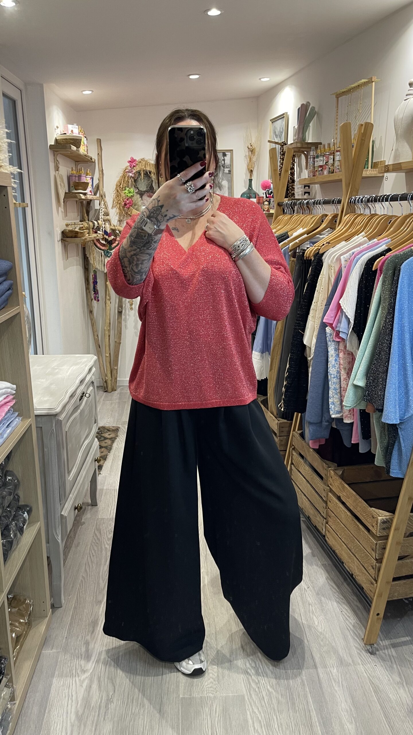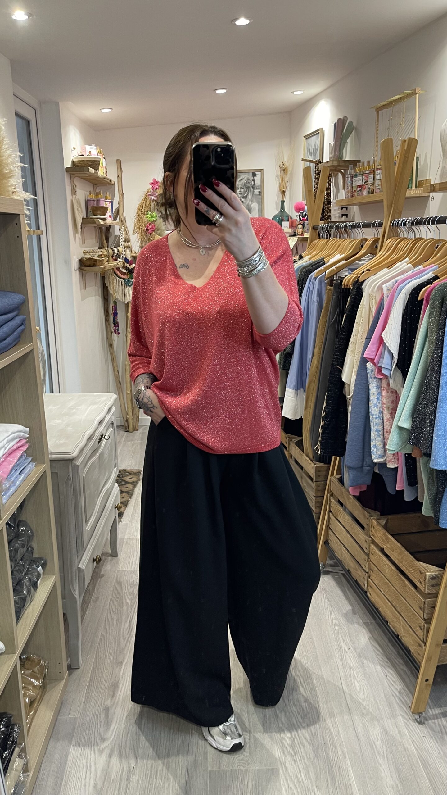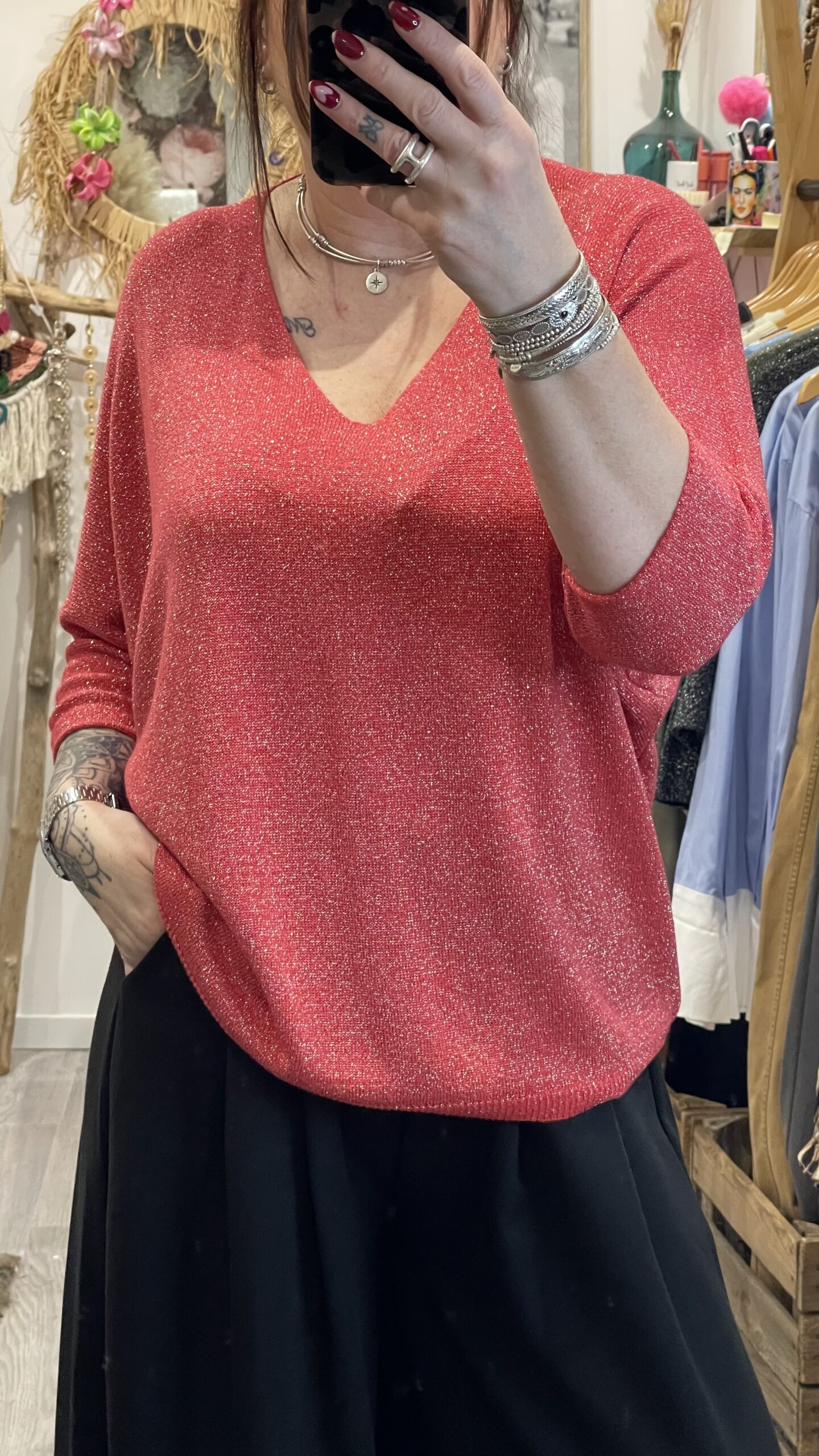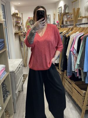 – Pull maille brillante.