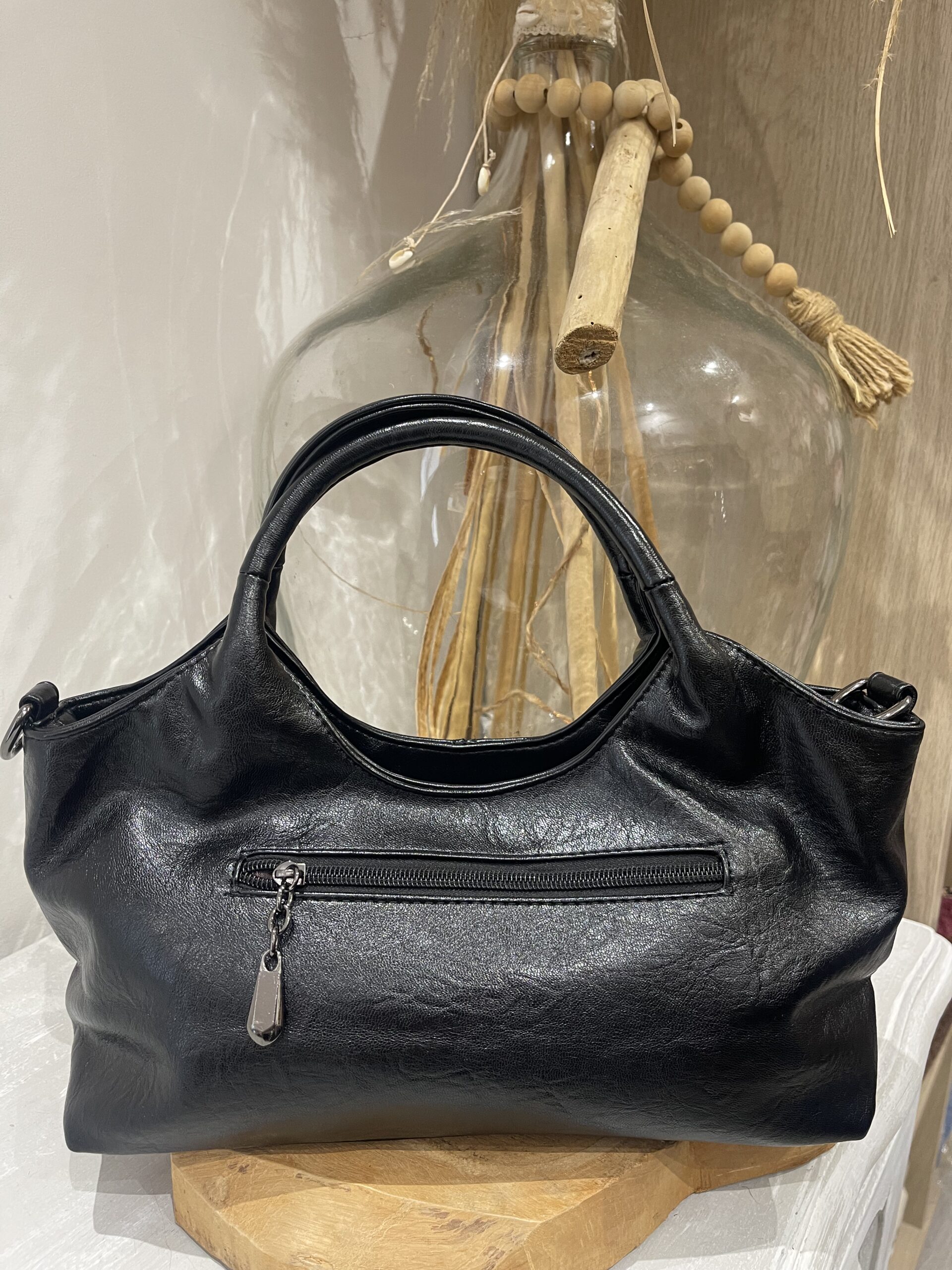 • Sac à main tendance qui peut également se porter en bandoulière, qui se ferme avec une fermeture éclair + 2 pochettes à  l’intérieur et une pochette à l’arrière du sac.