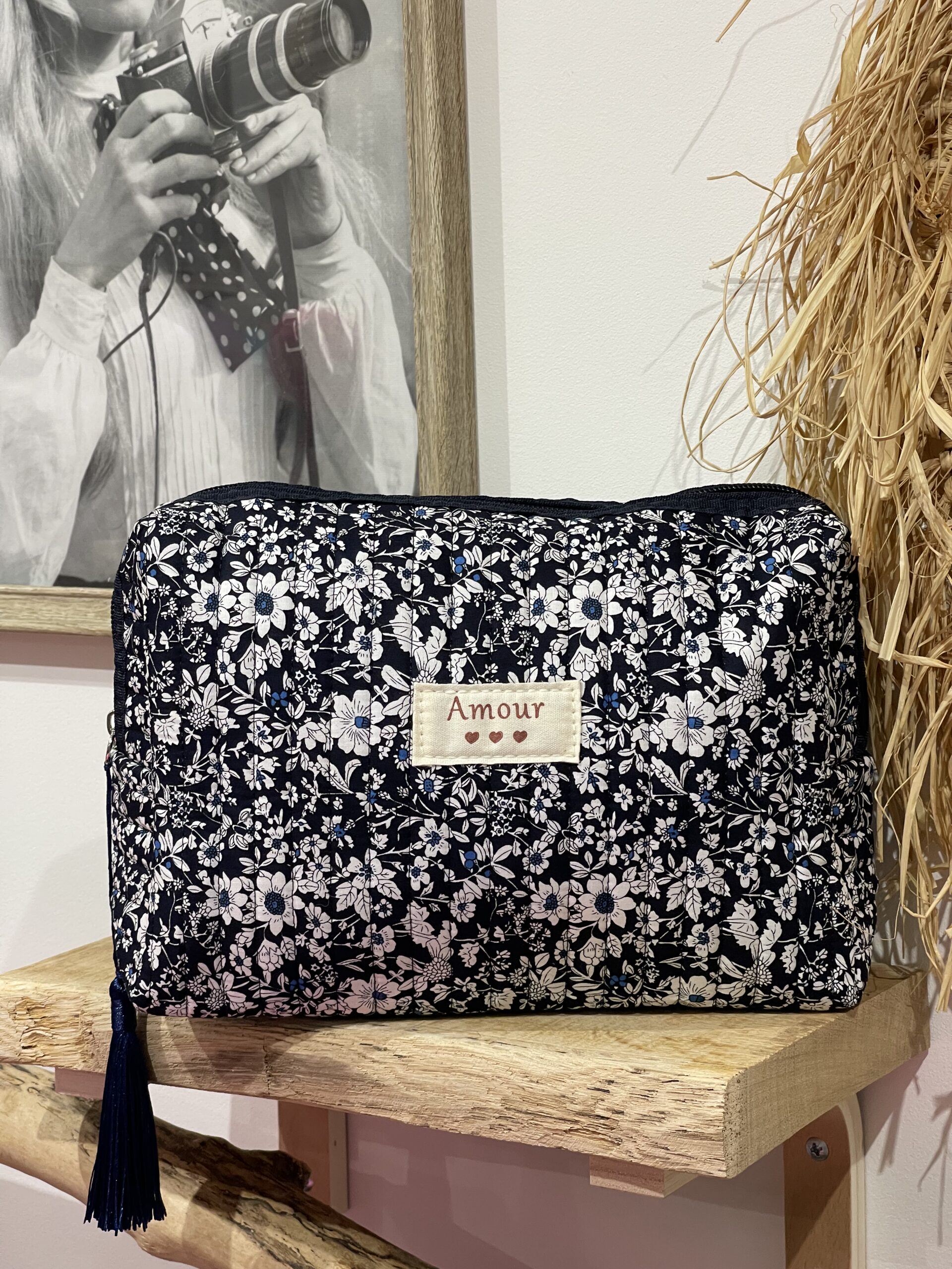 – Trousse matelassée avec pompon intérieur imperméable, idéal pour transporter vos produits de beauté, maquillage, produits solaires etc…